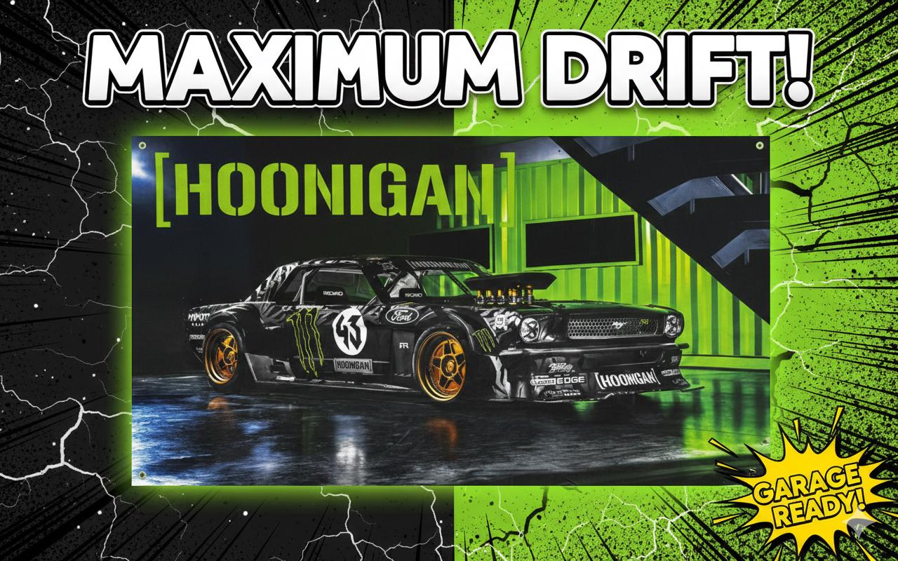 Add a bold statement to your space with this high-quality Hoonigan Racing Banner! Measuring 3x5ft, this eye-catching banner is perfect for any racing enthusiast or man cave decor. Add some adrenaline to your walls today!