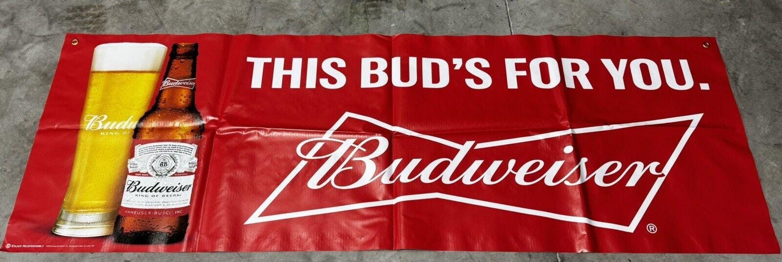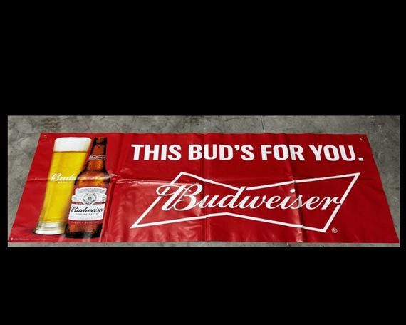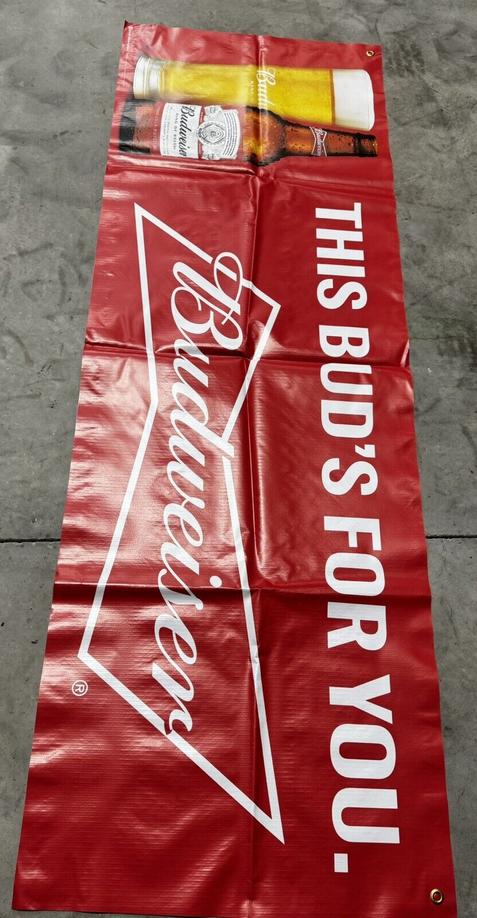 This 2x6ft Budweiser banner is the perfect addition to any man cave or beer lover's collection. Featuring the iconic "This Buds For You" slogan, this banner is a must-have for any Budweiser fan. The banner is made of high-quality materials and is designed to last for years to come.