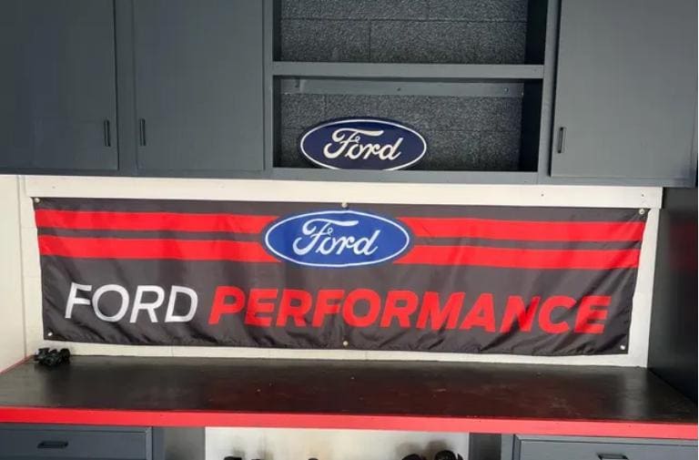 This Ford Performance Racing Team Garage Banner Man Cave Banner is a must-have for any fan of American automobiles. The banner features the iconic Ford logo and is perfect for decorating your garage or man cave. Whether you're a collector or simply a fan of Ford automobiles, this banner is a great addition to your collection. Its unique design and high-quality construction make it a standout piece that is sure to impress. So why wait? Add this Ford Motorsports Garage Banner Man Cave Banner to your collection today!