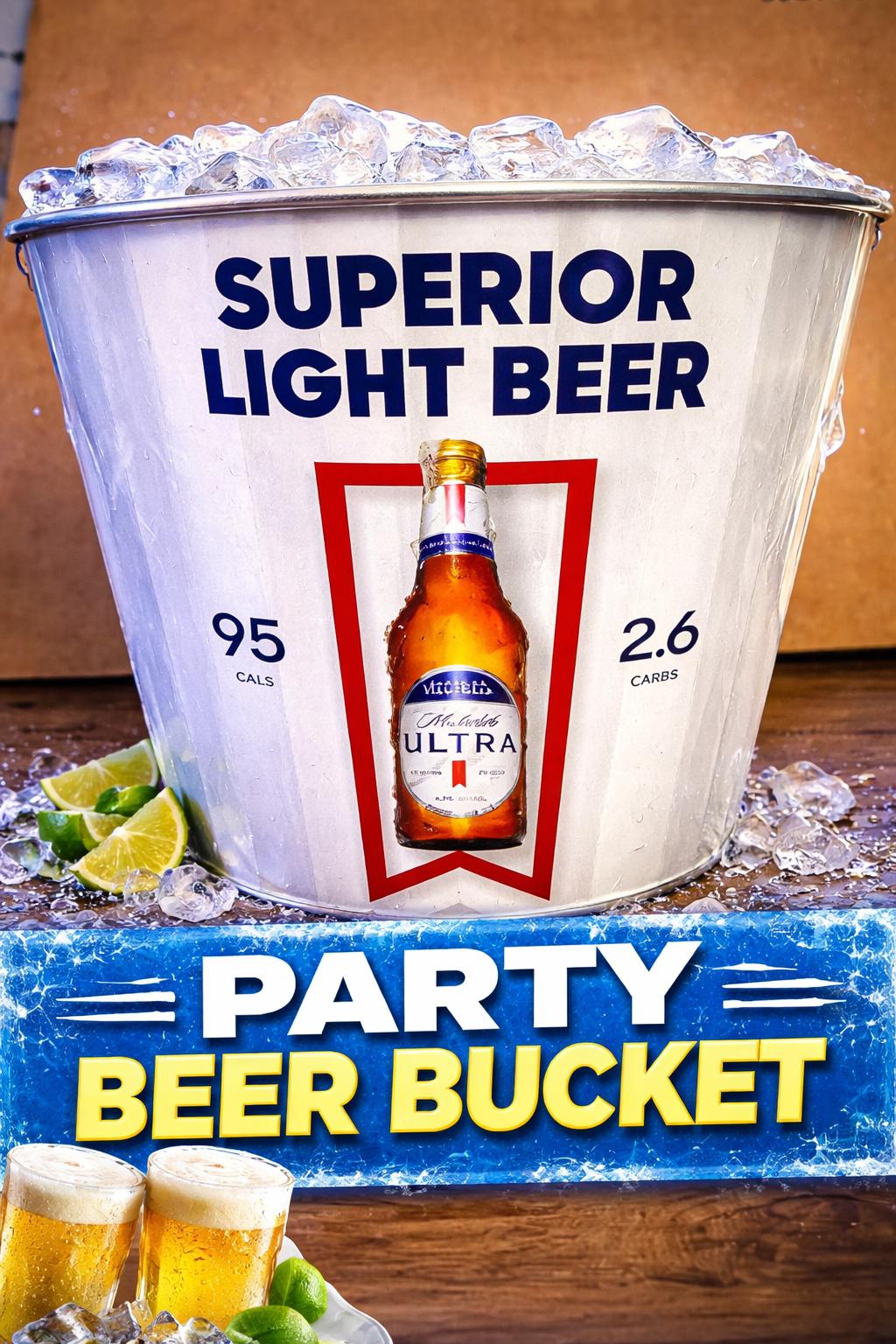 Keep your drinks chilled in style with this Michelob Ultra Iconic Bucket! Featuring the carbs/calories details and the signature ULTRA ribbon, this bucket is perfect for parties, bars, BBQs, tailgates, and home bars.