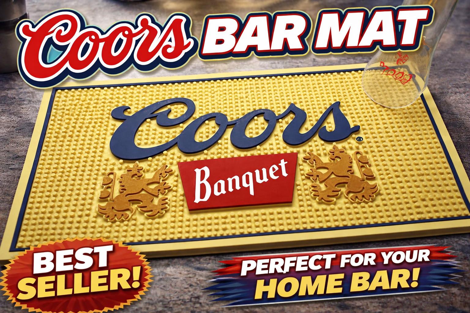 Exquisite Coors Banquet Bar Mat Whether you're enjoying a drink at home or watching the game at a sports event, the Bar Mat is the perfect addition to your setup. Made from durable materials, this mat resists spills and stains and is easy to clean. The non-slip rubber backing ensures that the mat stays securely in place. Measuring 18x12 inches, it's the perfect size to accommodate multiple glasses and bottles. The branded design adds a touch of style to any bar setup, showcasing your love for the popular beer. Perfect Gift for Coors Banquet Fans Ideal for Coors Banquet enthusiasts, this bar mat makes a thoughtful and stylish gift for birthdays, holidays, or special occasions.