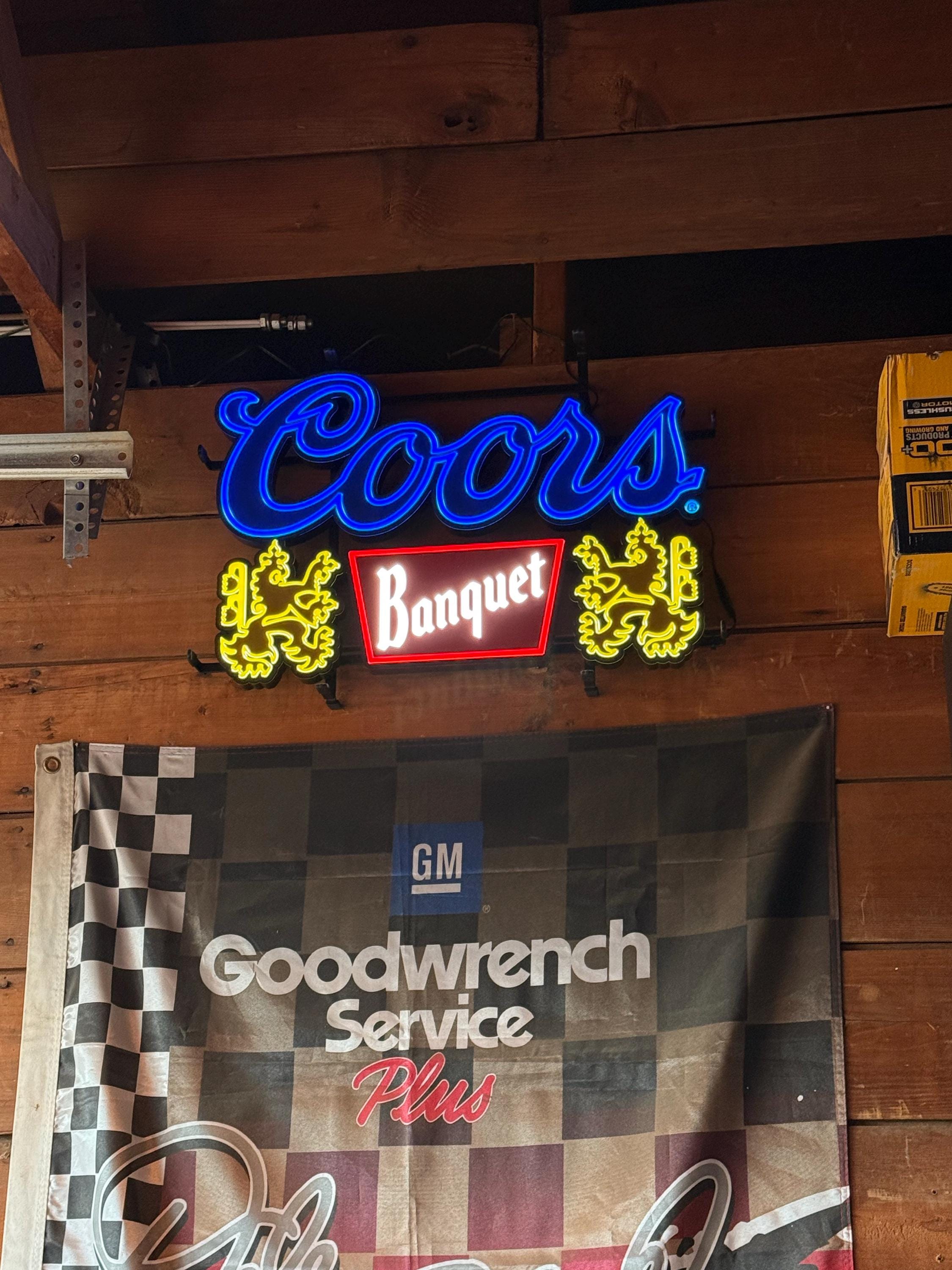 Coors Banquet LED Neon Sign, Coors Beer Light, Man Cave Bar Decor, Neon Bar Sign, Coors Banquet Merchandise, Light-Up Beer Sign, Home Bar Accessories, Vintage Beer Memorabilia, Rustic Western Bar Sign
