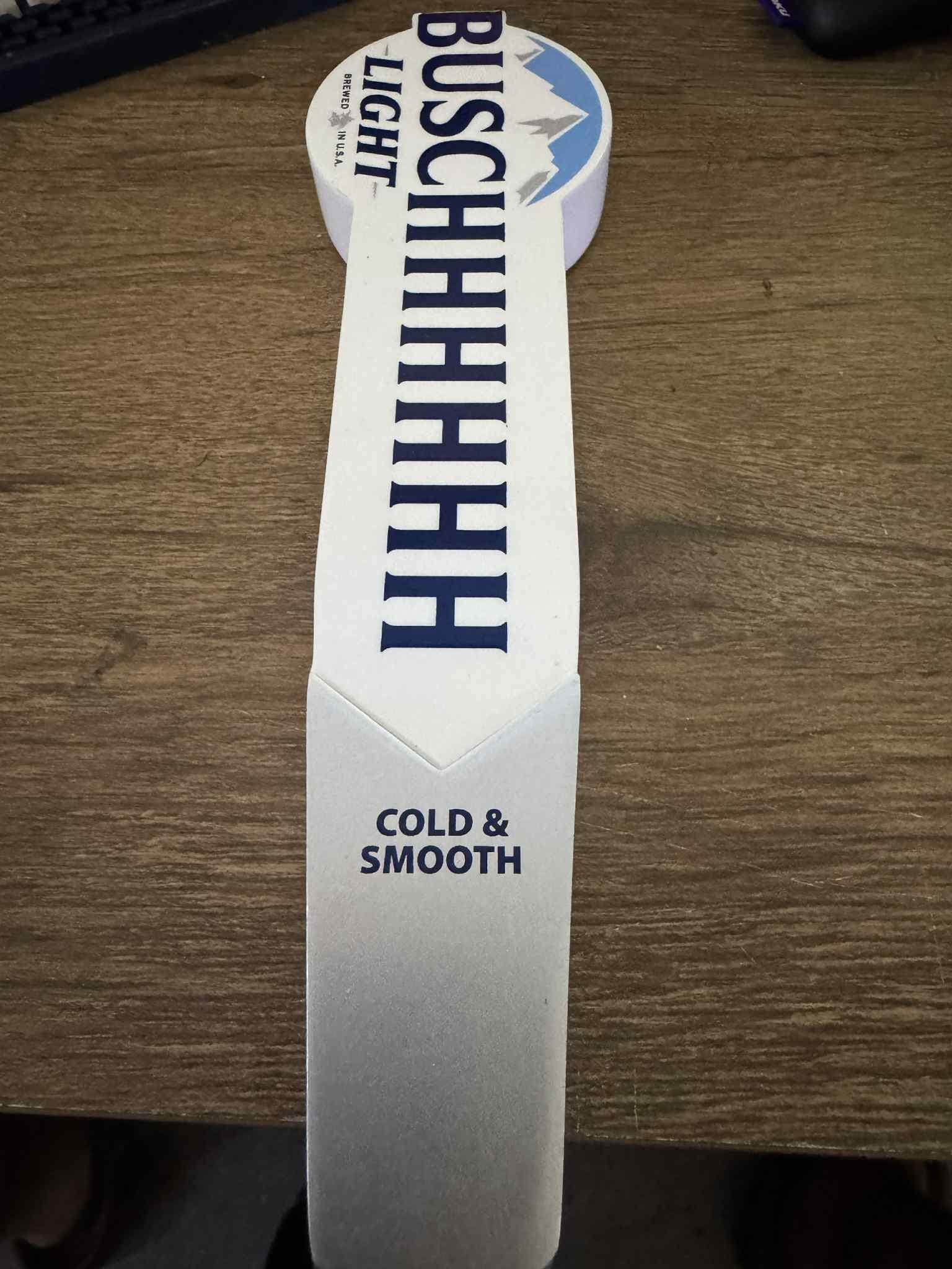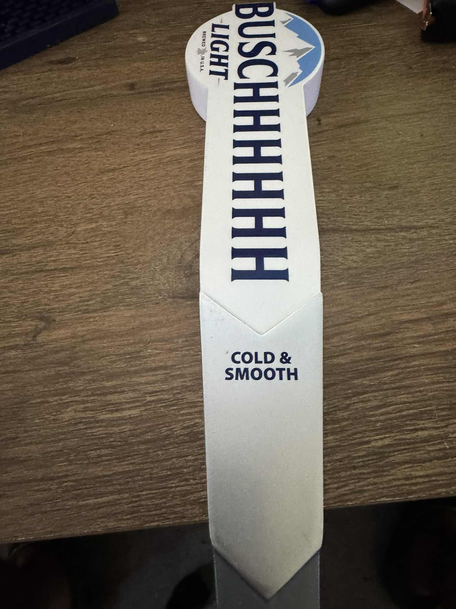 Add some crisp character to your bar setup with this Buschhhhhhh Light beer tap handle, featuring the iconic “COLD & SMOOTH” slogan. This used handle is in good condition with minor wear on the base (see photo). A great piece for collectors, Busch Light fans, or home bar enthusiasts!