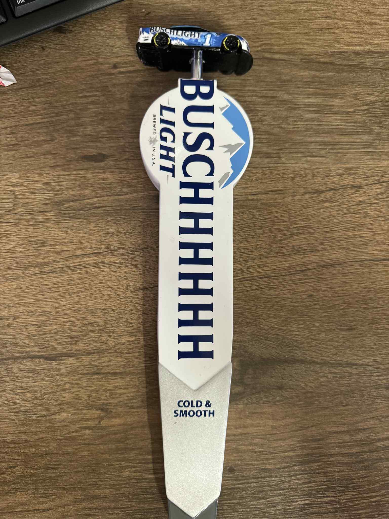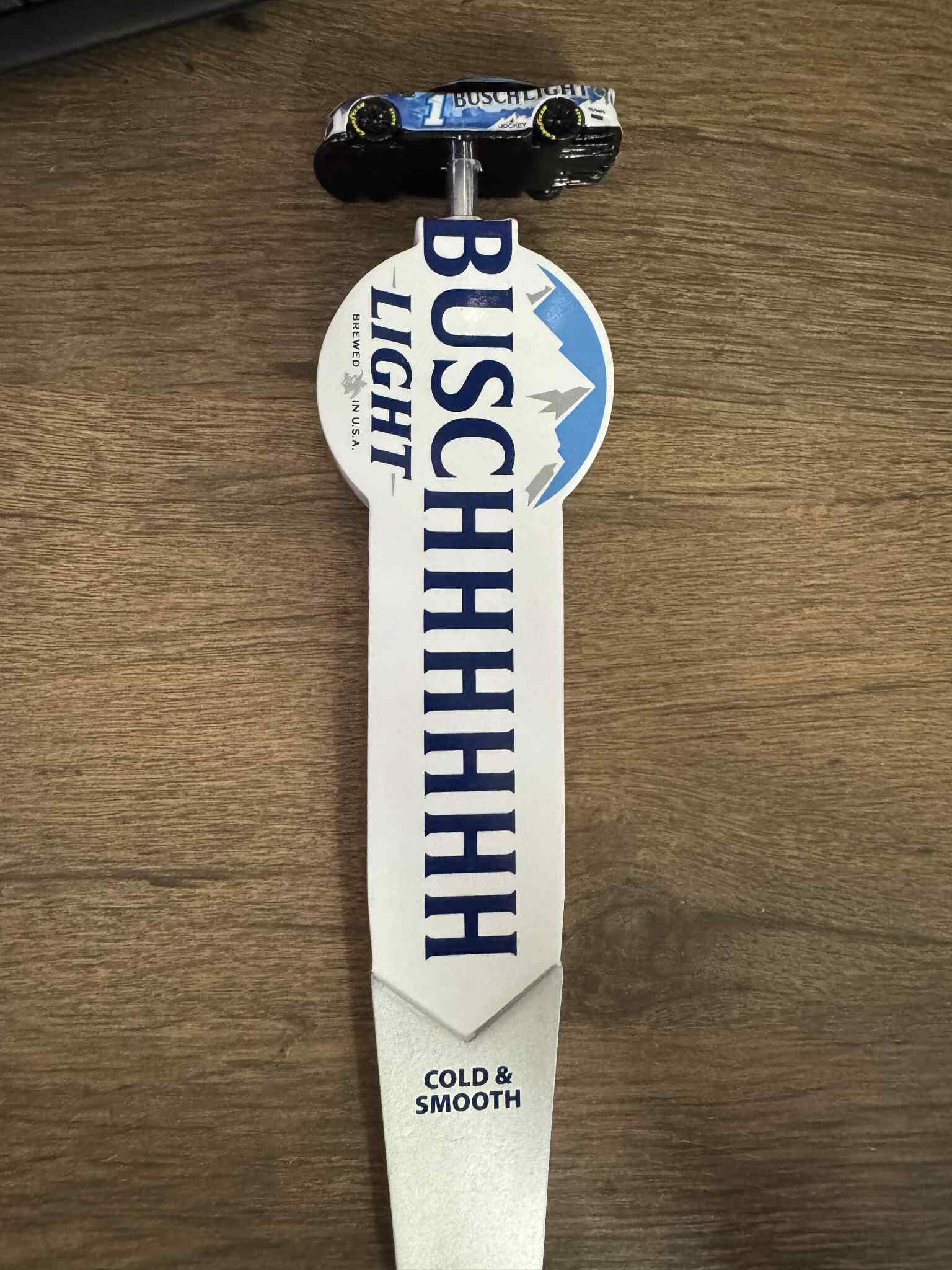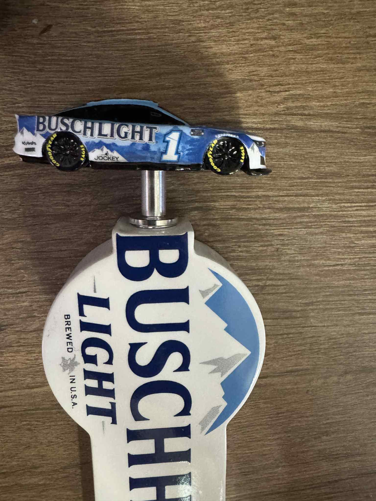 Upgrade your bar or mancavedecor with this official Busch Light NASCAR #1 Tap Handle, featuring the iconic Busch Light race car mounted proudly on top. This is an eye-catching collectible for beer fans, NASCAR lovers, bar owners, or anyone who wants a standout display piece.