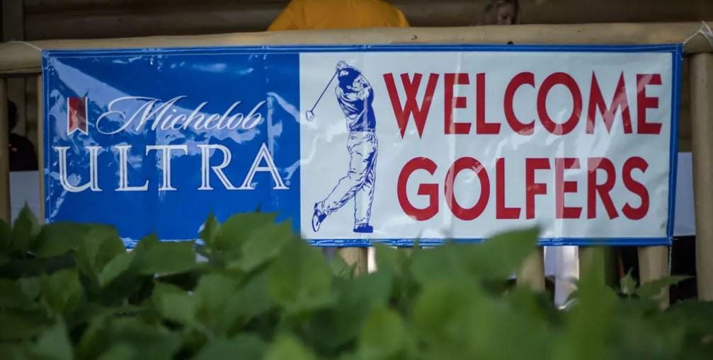Add a touch of golf-day class to your bar, patio, or man cave with this Michelob Ultra “Welcome Golfers” banner.