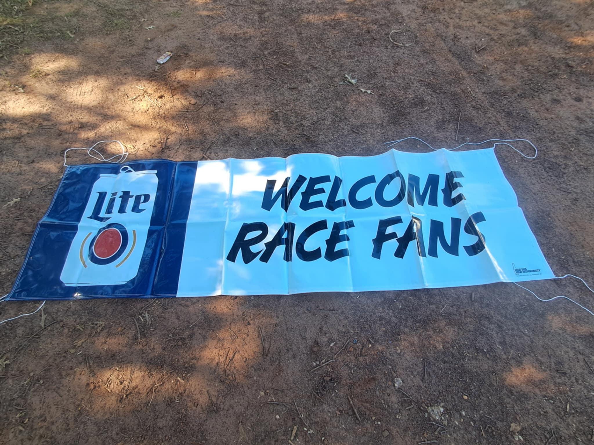 Bring racing excitement to your walls with this Miller Lite Welcome Race Fans Banner. This oversized 3x8 ft banner is made of durable PVC with attached strings, designed for easy hanging at events, bars, or garages.
