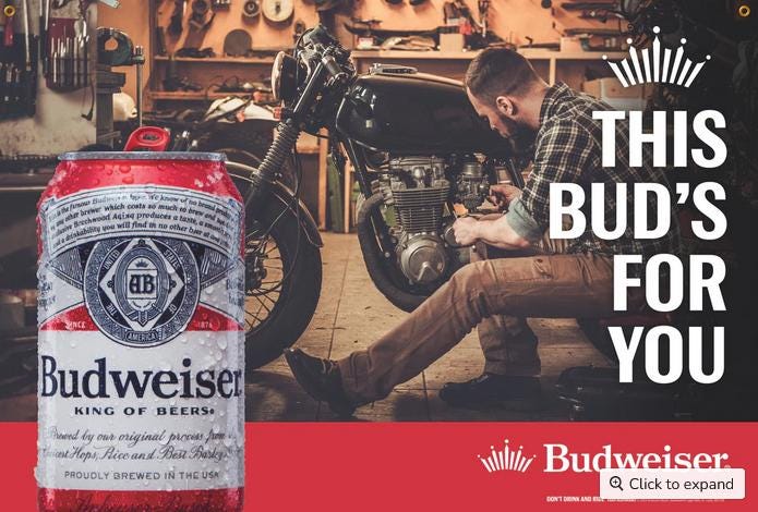 Design: Budweiser beer can + mechanic working on a motorcycle