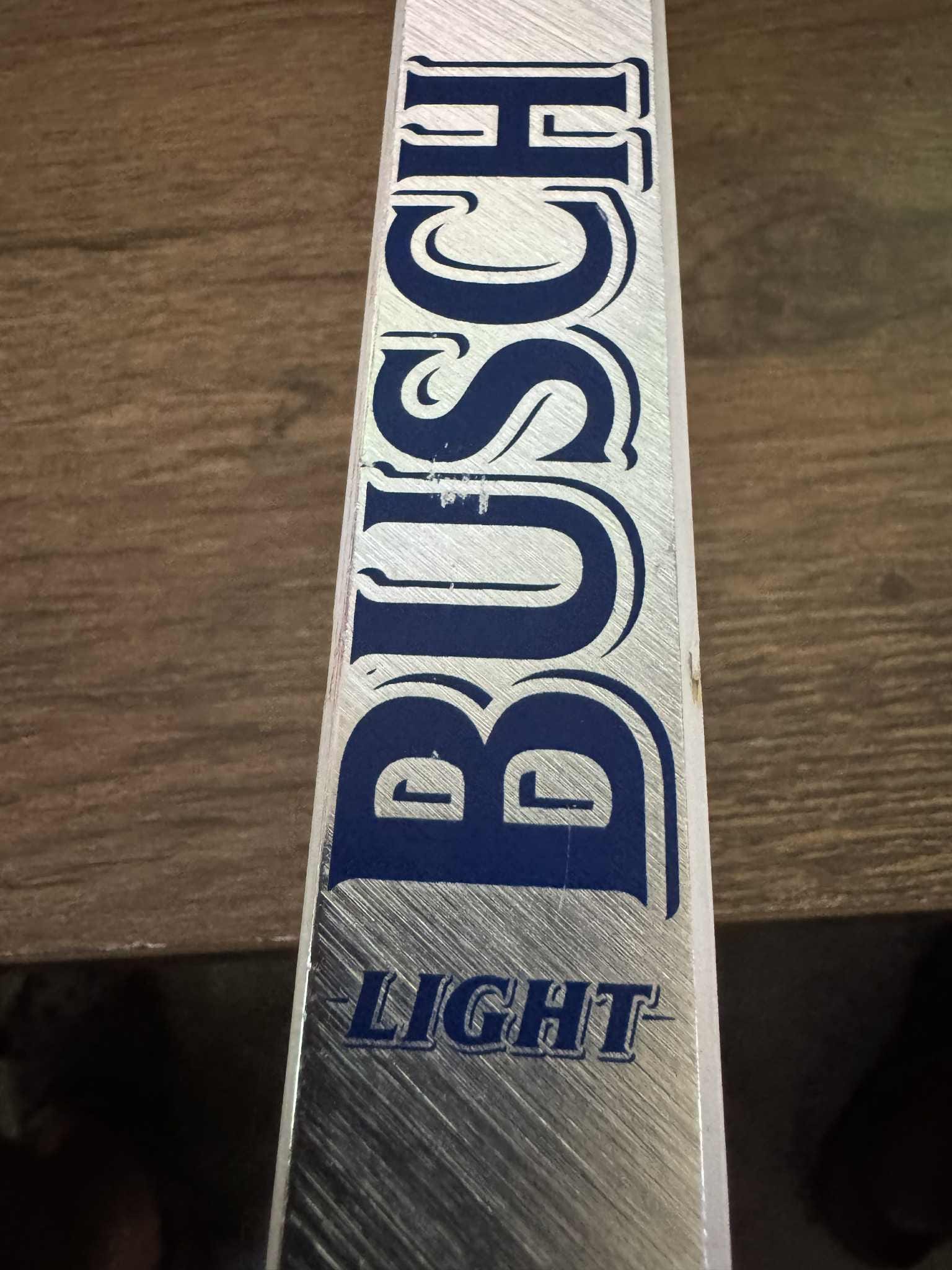 Authentic Busch Light beer tap handle featuring embossed aluminum plates on all four sides — a heavy-duty early 2000s design rarely seen today.