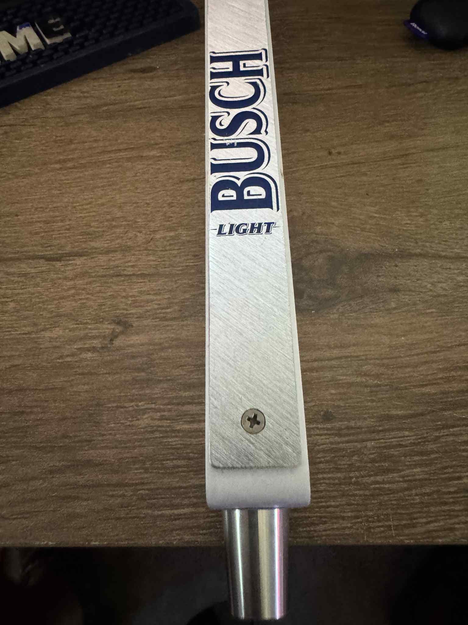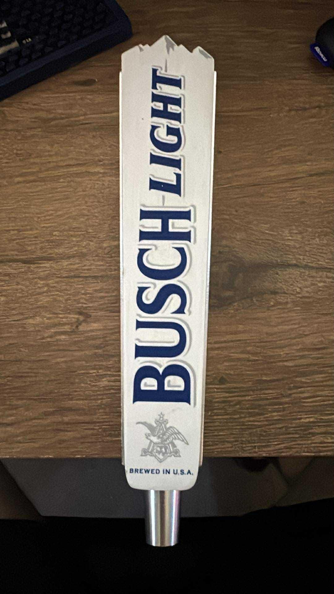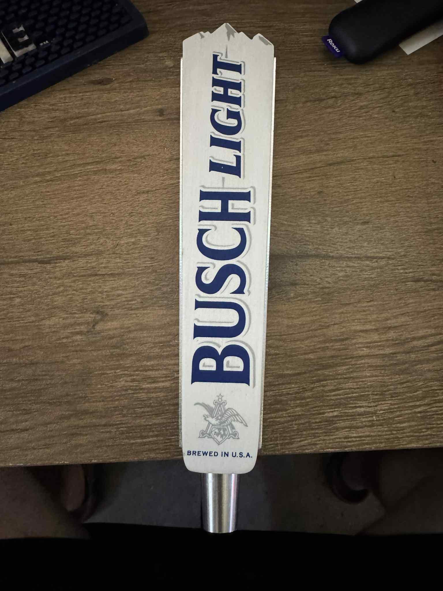 This rectangular “fence-post” style handle includes the classic Busch Light logo with the Anheuser-Busch eagle crest at the base and the “Brewed in U.S.A.” text. Made for distributors and select bars — not the common plastic replica versions made later.