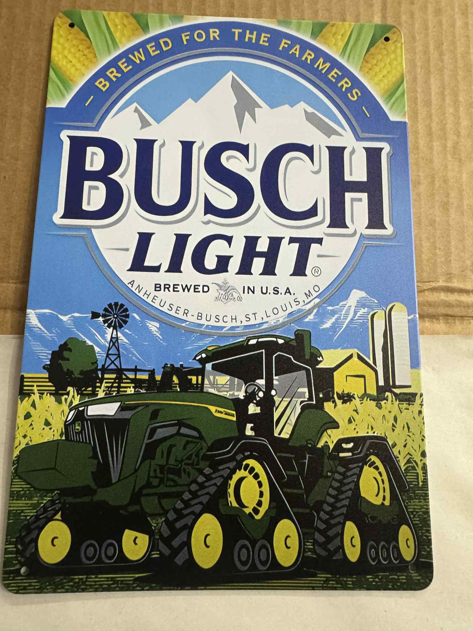 Crafted from durable metal with pre-drilled holes for easy hanging, this Busch Light sign adds a rustic, Americana vibe wherever it’s displayed. A great gift for those who love beer, tractors, and the open fields.