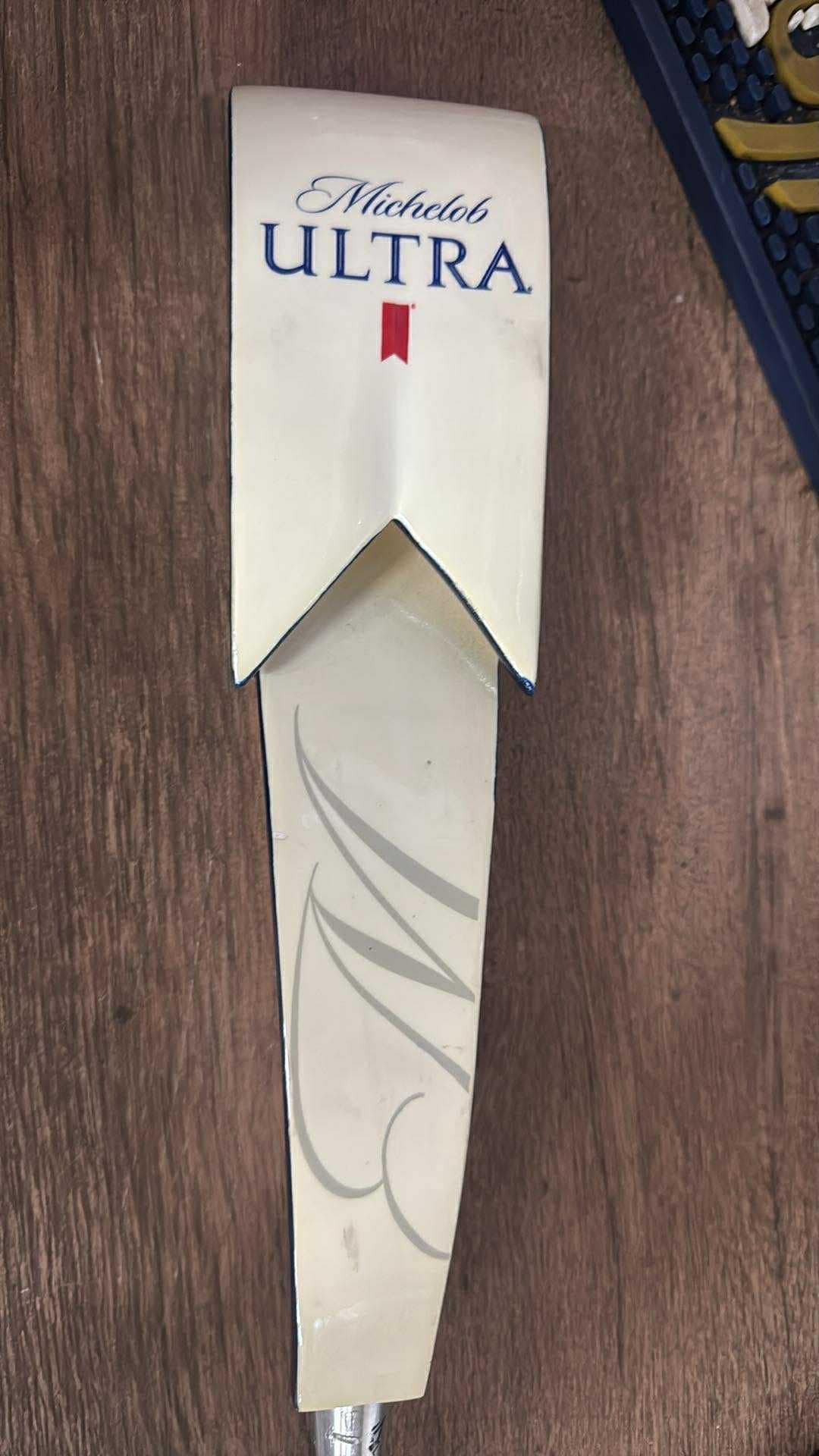 This authentic Michelob Ultra Tap Handle features the iconic clean-curve design in a soft off-white tone — a natural aging effect seen in earlier production runs from Taphandles USA.