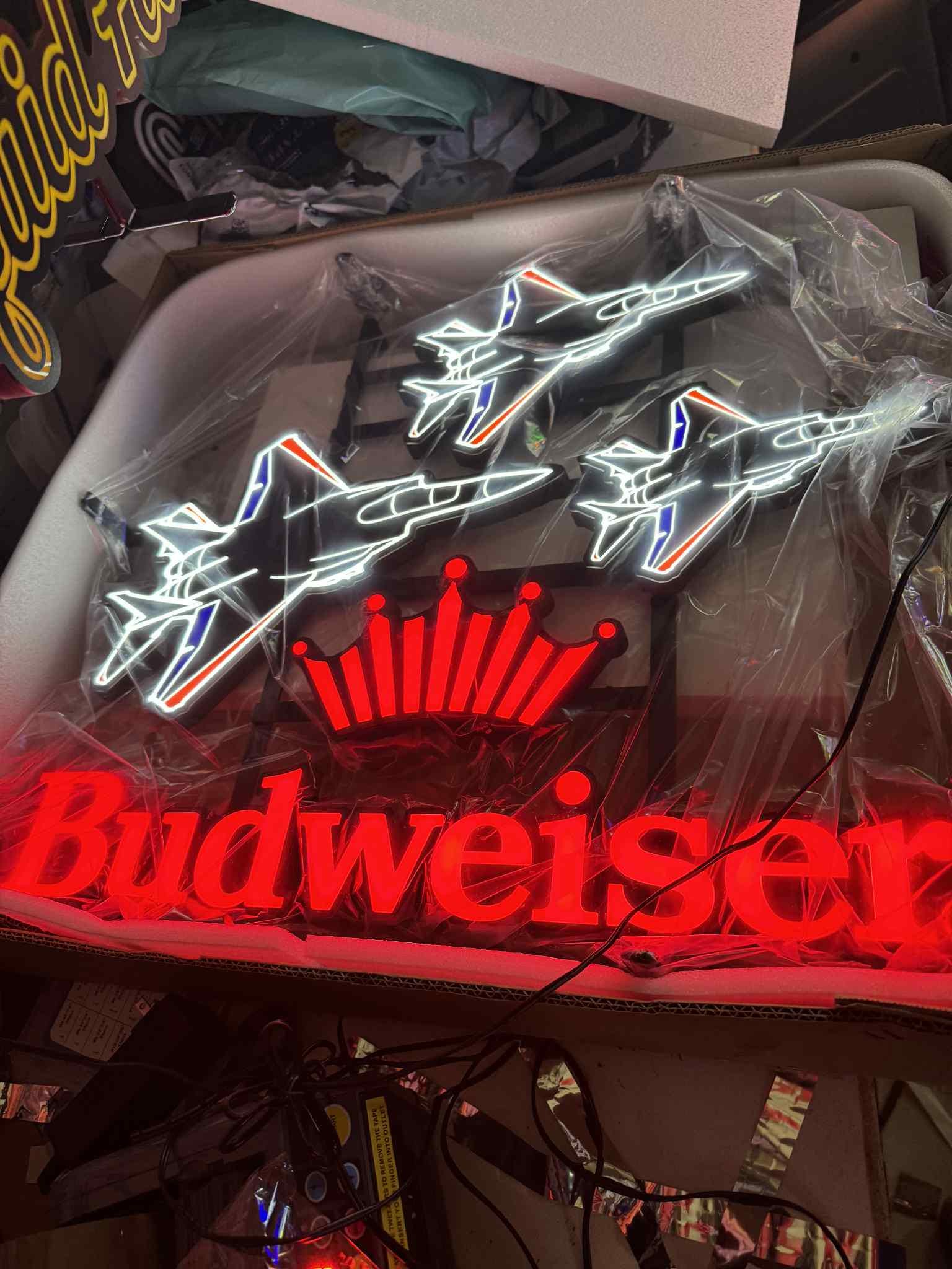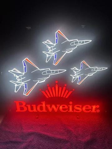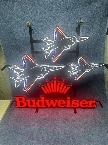 Budweiser Fighter Jets LED Neon Sign – 23x22" – Brand New in Box