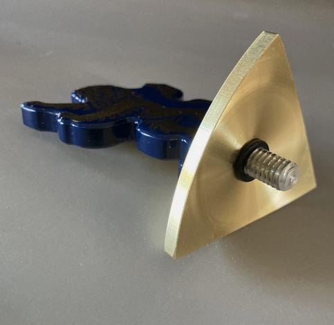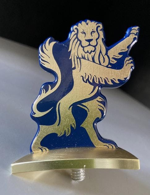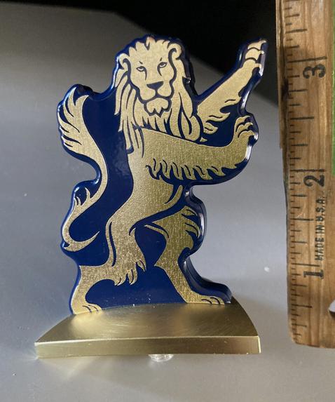 This topper features the gold & navy Modelo lion, approx. 3.25 inches tall, mounted on a sturdy base with a threaded insert for easy installation.