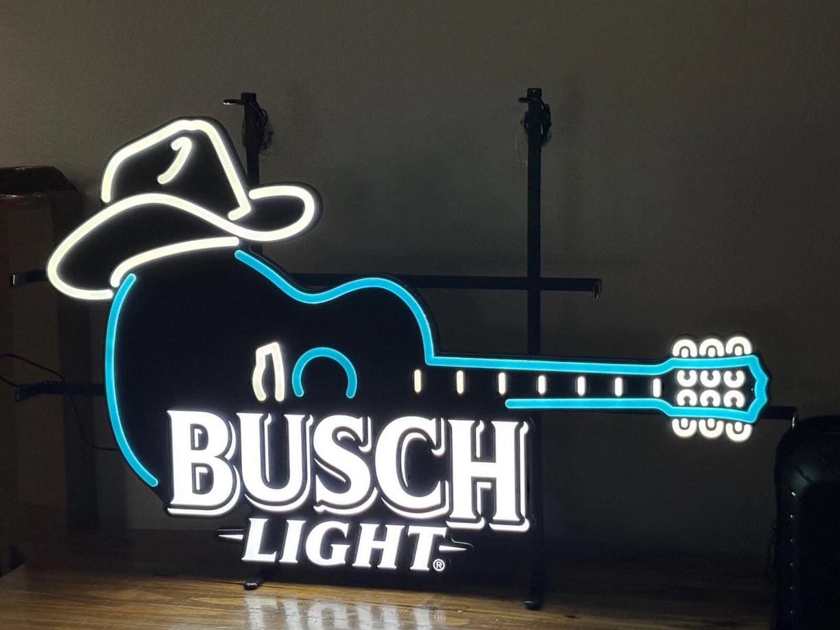 Bright, eye-catching LED bar sign featuring a country-style guitar silhouette with a bold light-up outline. Perfect for home bars, mancavedecor, garages, game rooms, patios, workshops, and display walls.