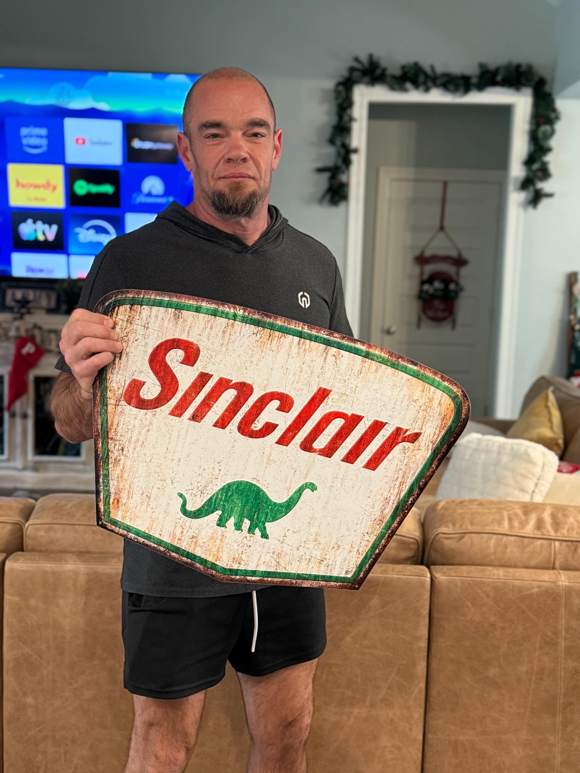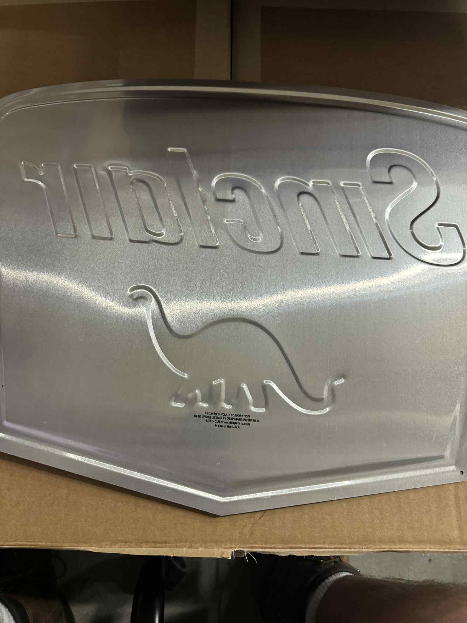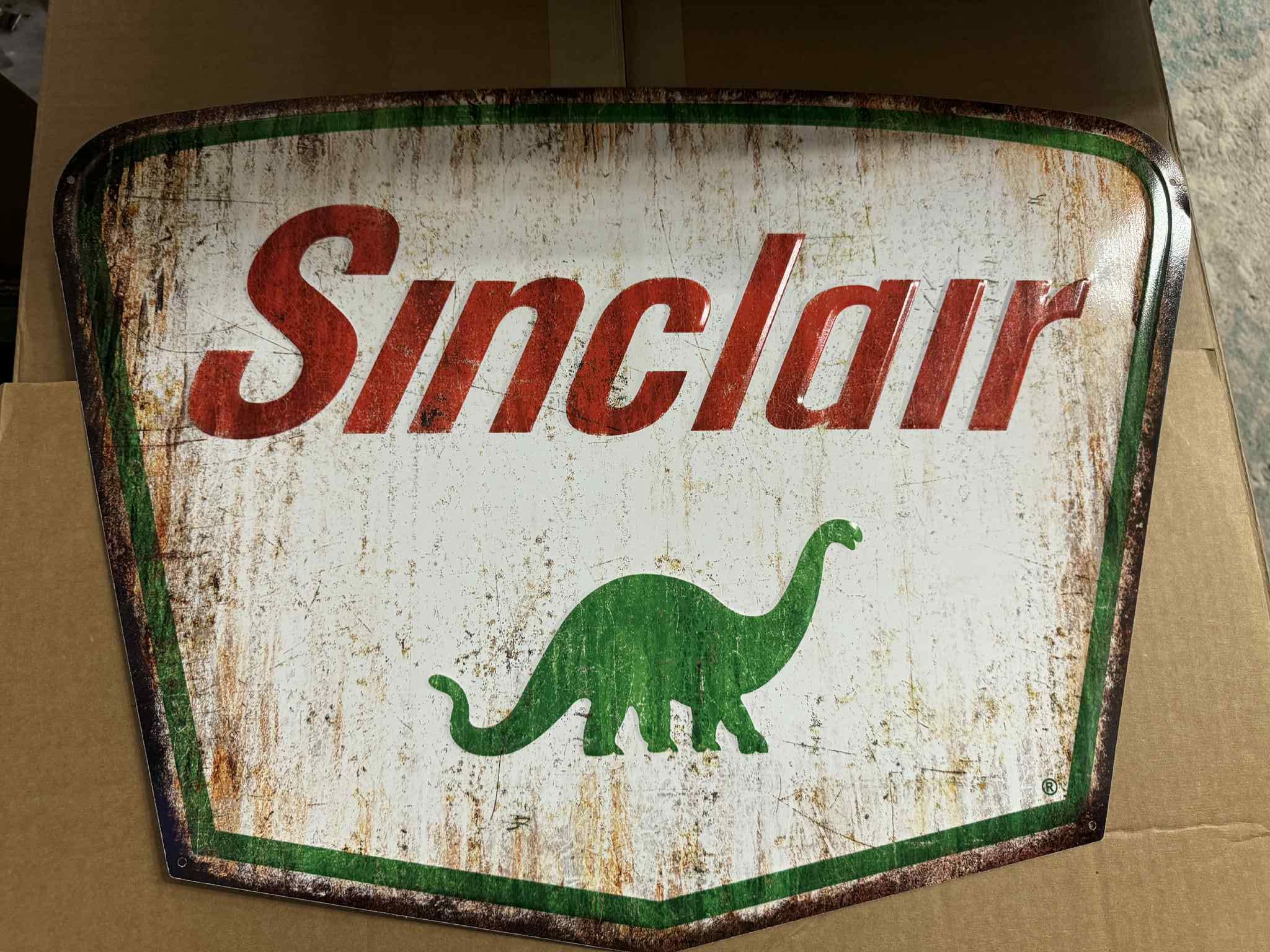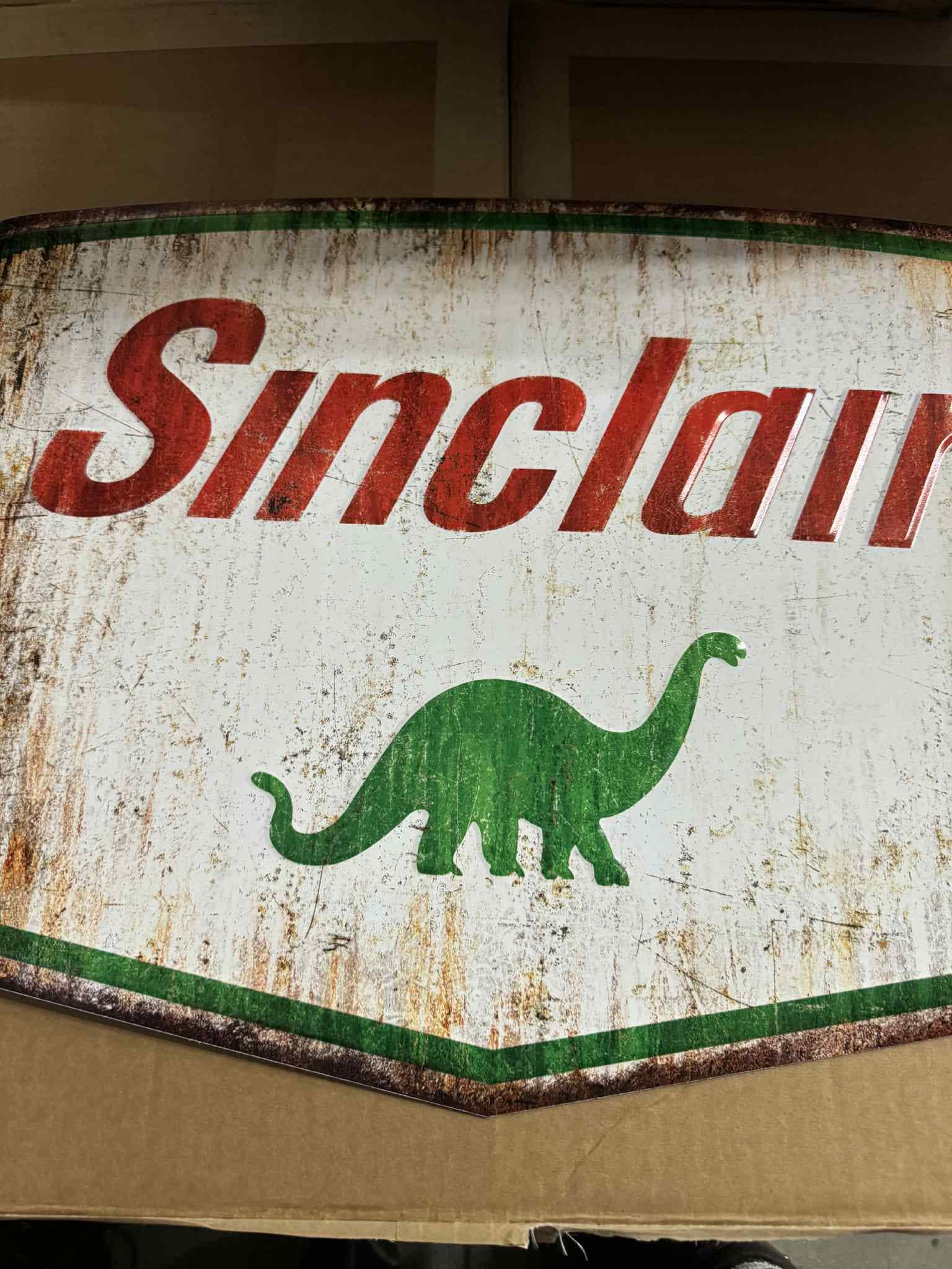 Bring classic gas & oil style into your garage or mancavedecor with this large 23” x 17” Sinclair Dino metal sign.