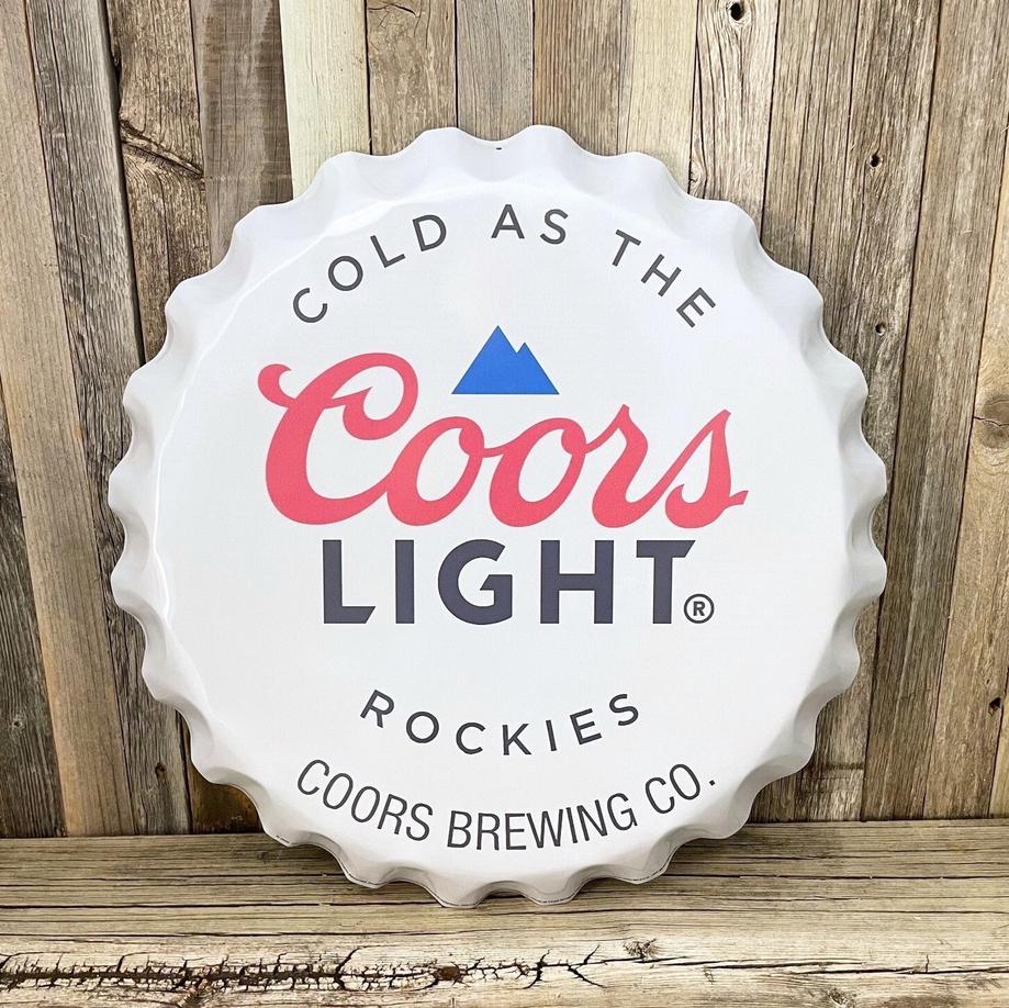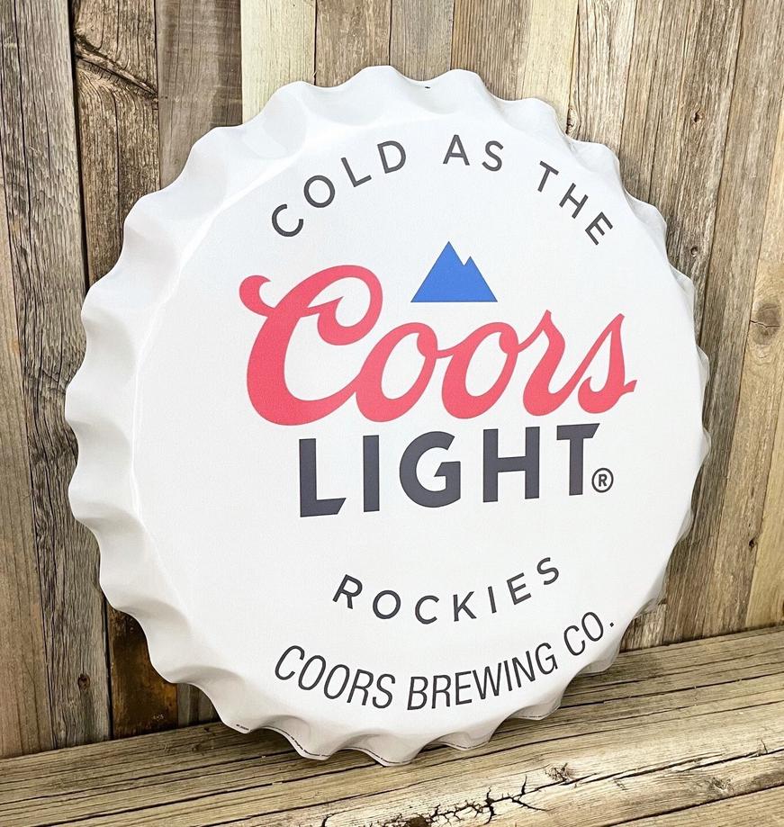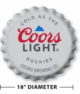 Secure yours now! This officially licensed Coors Light 18-inch stamped bottle cap sign is the perfect statement piece for any bar area, garage, game room, brewery space or mancavedecor collection.