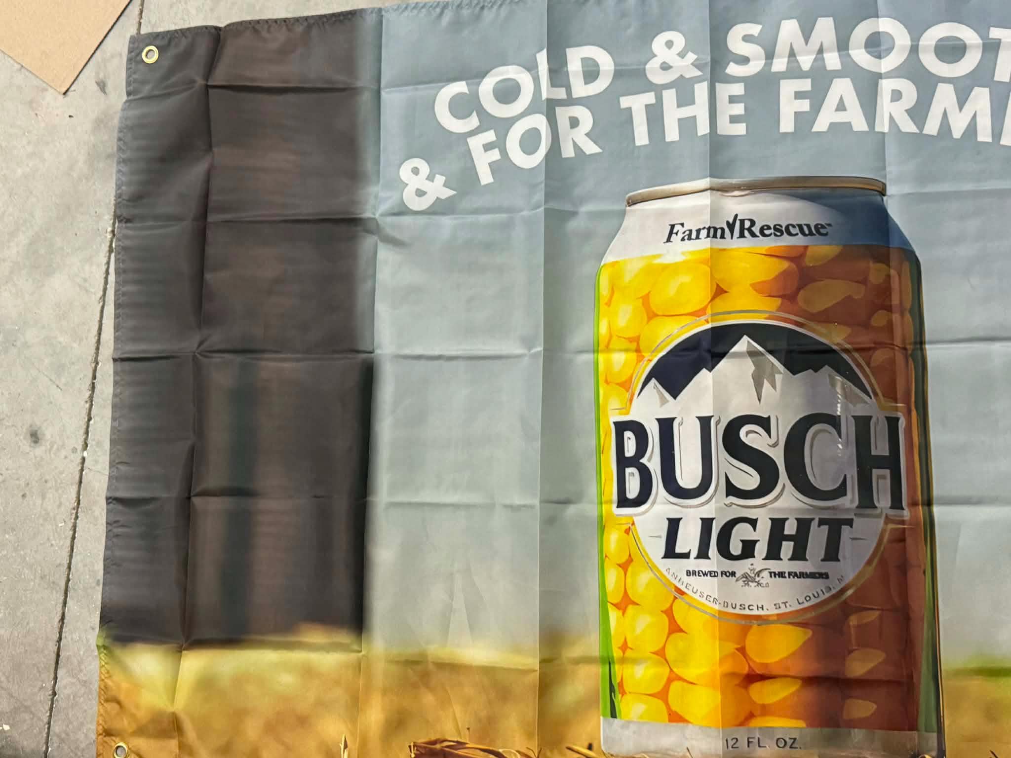 Featuring a bright Beer can over a golden corn background, this banner pops anywhere you put it — and is sized big enough to make a statement without being too heavy.
