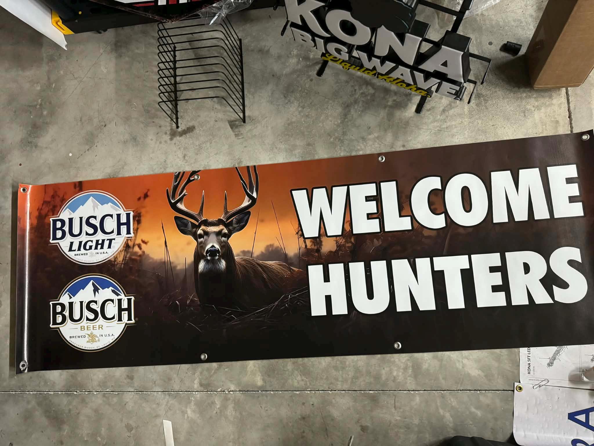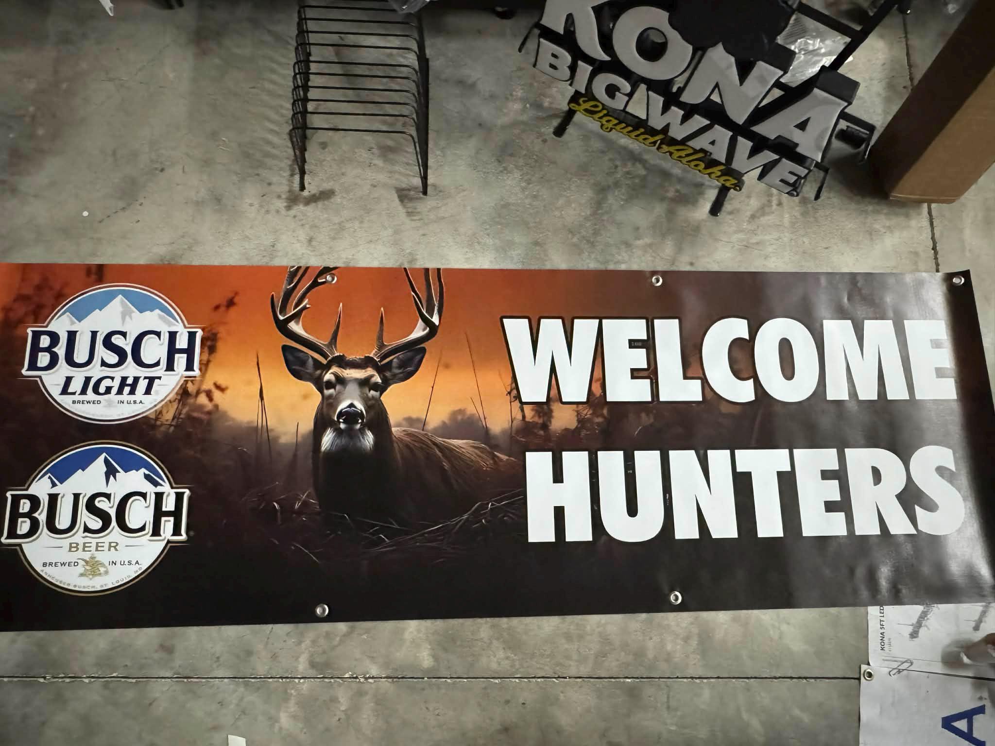 đŠ Make a bold statement in your bar, garage, mancave, hunting lodge, or cabin with this Busch Light âWelcome Huntersâ 2Ă6 ft heavy-duty vinyl banner.