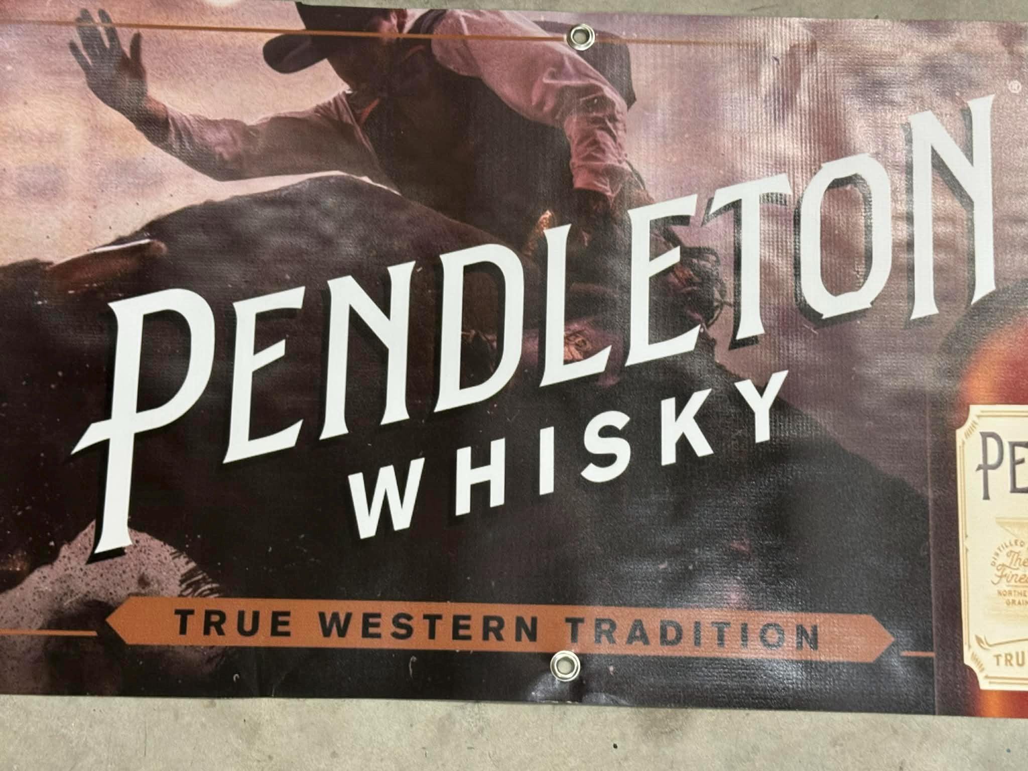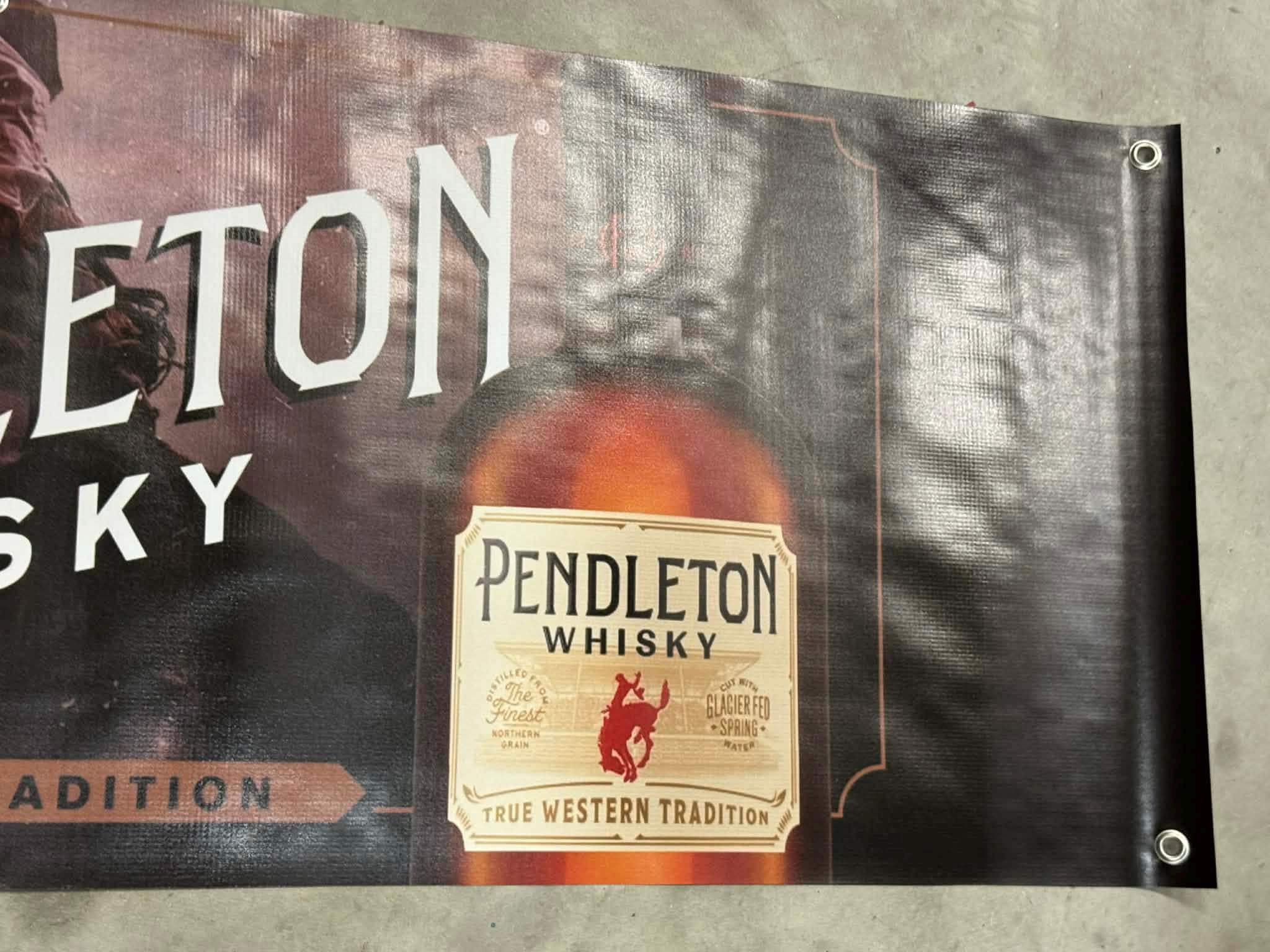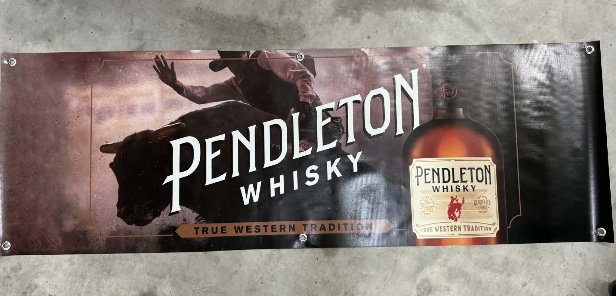 Bring serious True Western Tradition into your space with this Pendleton Whisky Heavy Vinyl Banner. This piece is built tough, weather-resistant, and perfect for your bar, shop, barn, ranch house, or mancave.