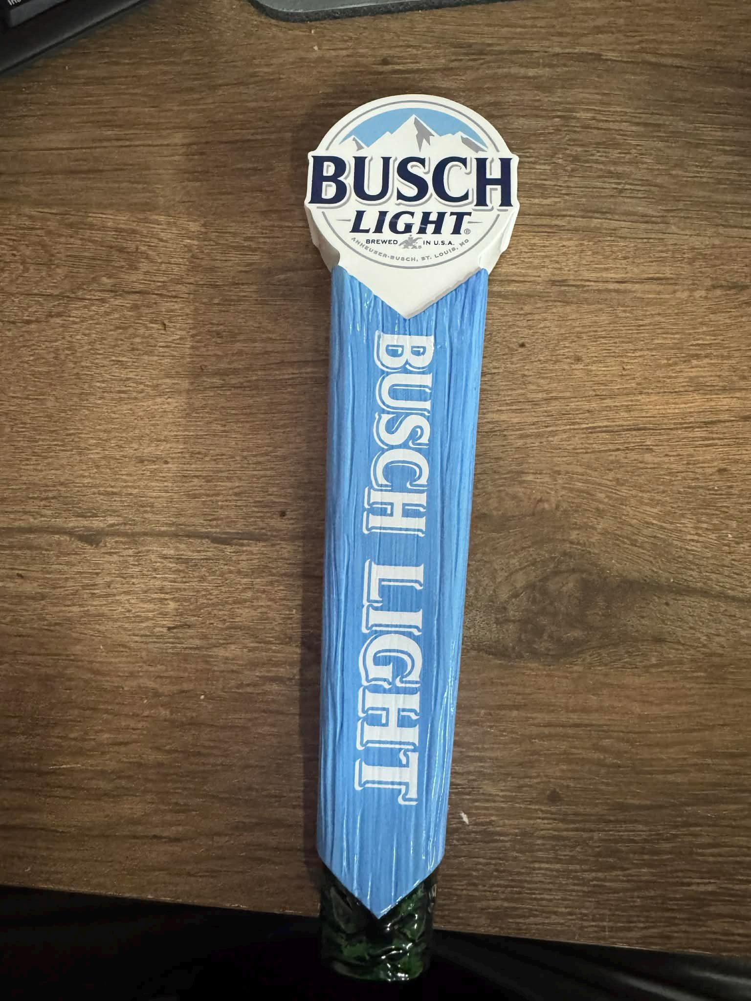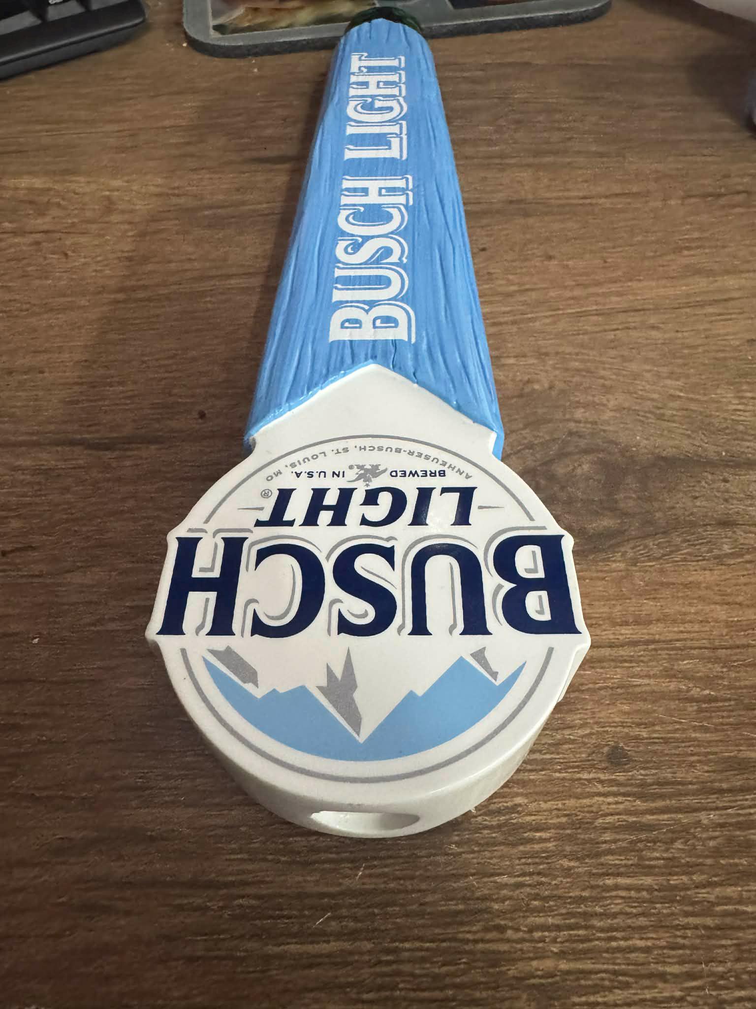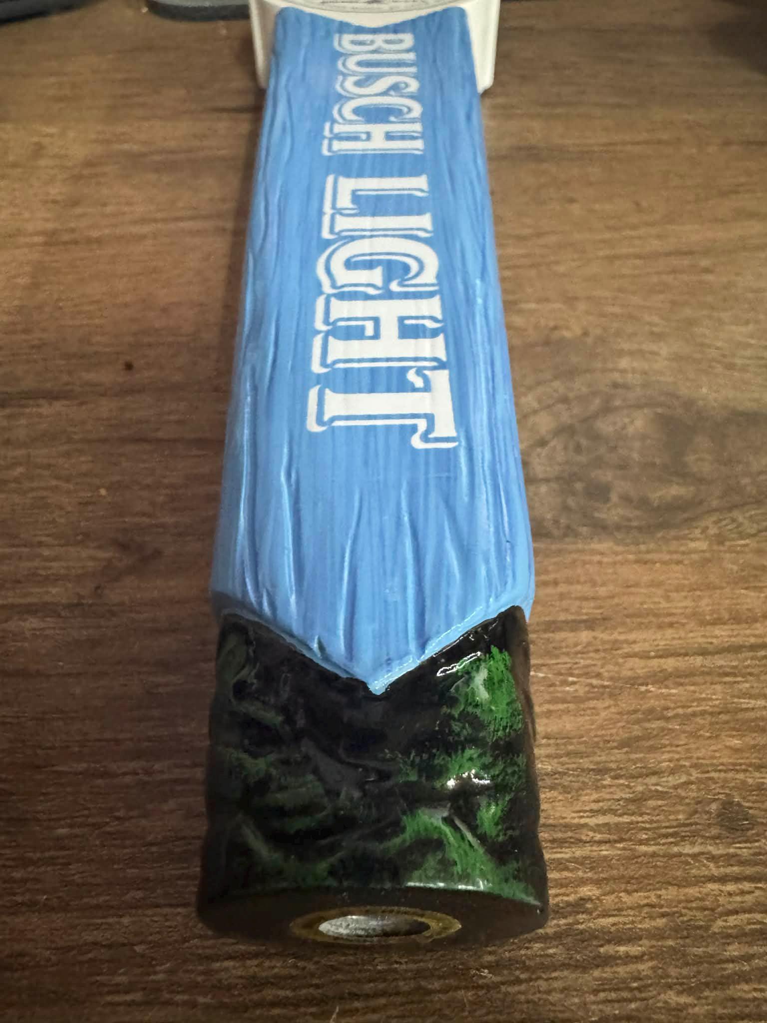 This is an official Busch Light beer tap handle, measuring 11 inches and appearing new in its original box. Clean, sharp graphics with the classic mountain logo and textured blue body. Perfect for mancavedecor collectors, home bars, kegerators, brewery displays, and Christmas gifting.