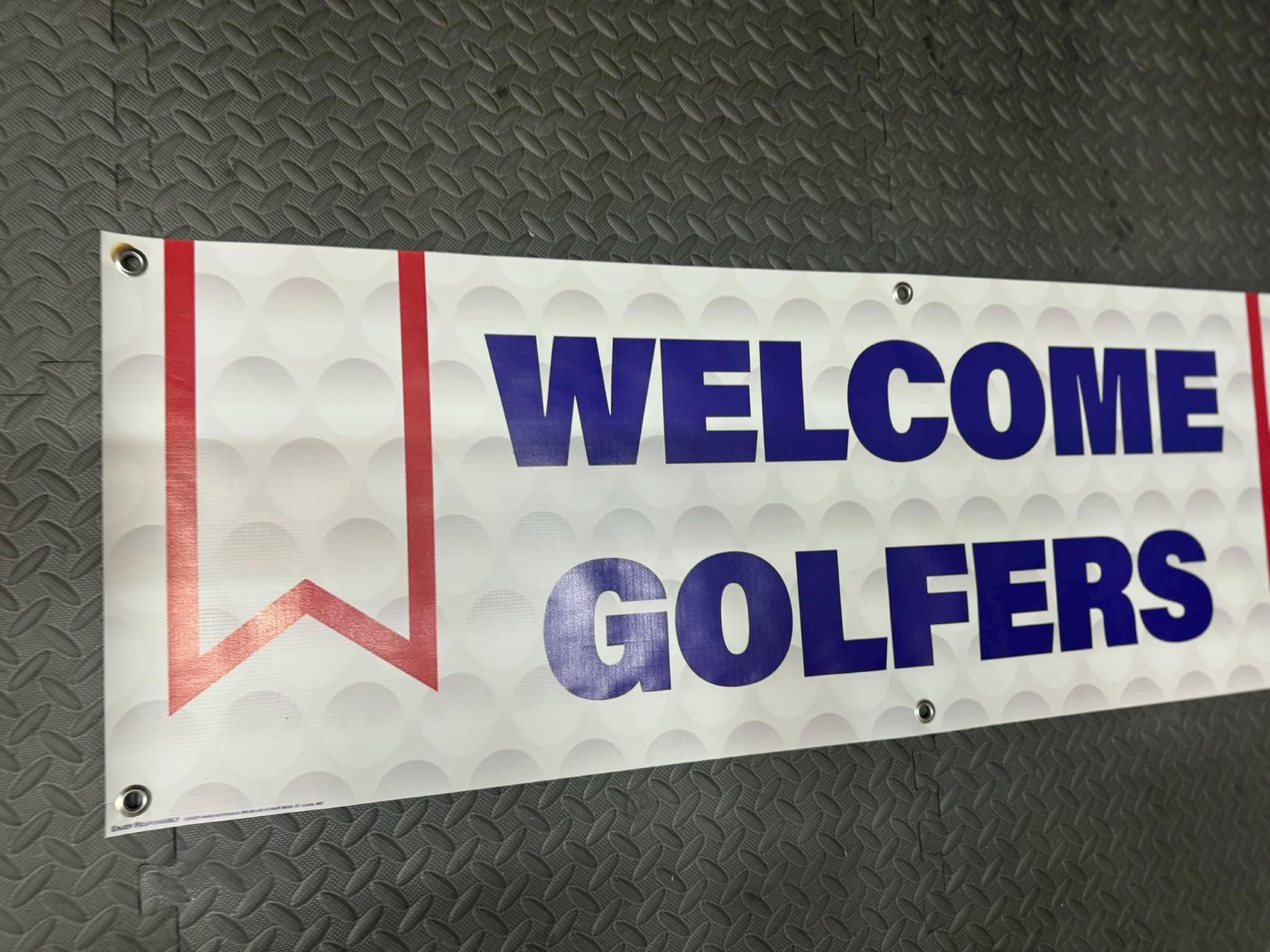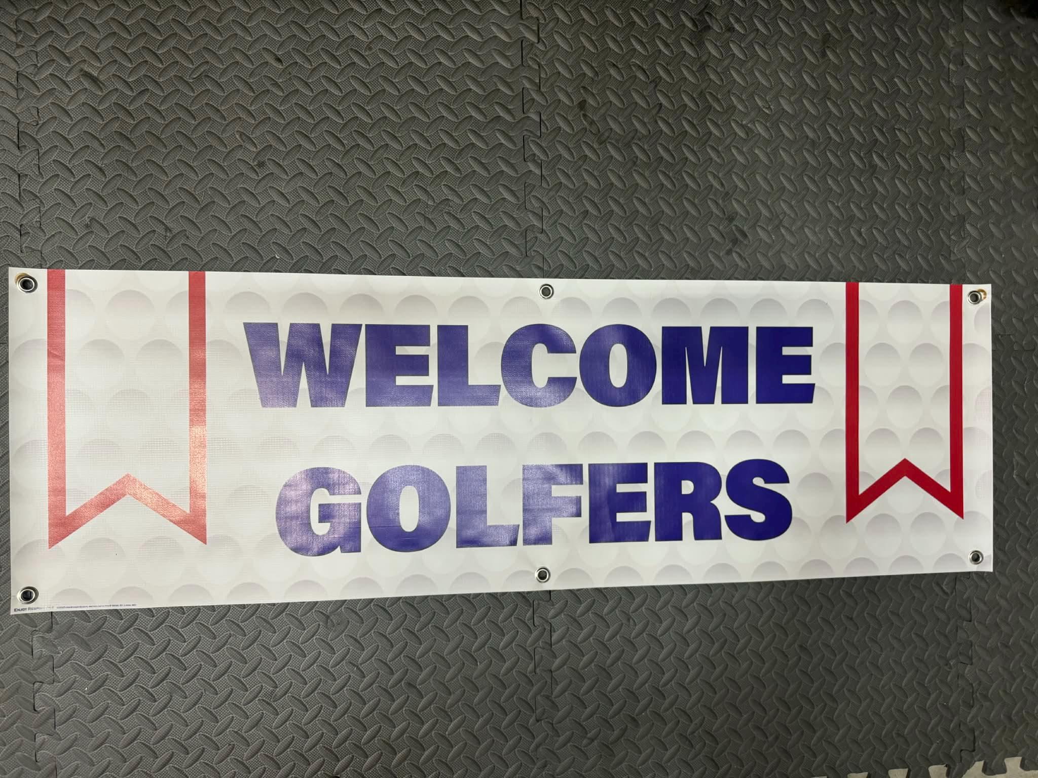 Welcome players in style with this NEW heavy-vinyl “WELCOME GOLFERS” banner, perfect for golf courses, tournaments, clubhouses, pro shops, garages, and mancavedecor setups.