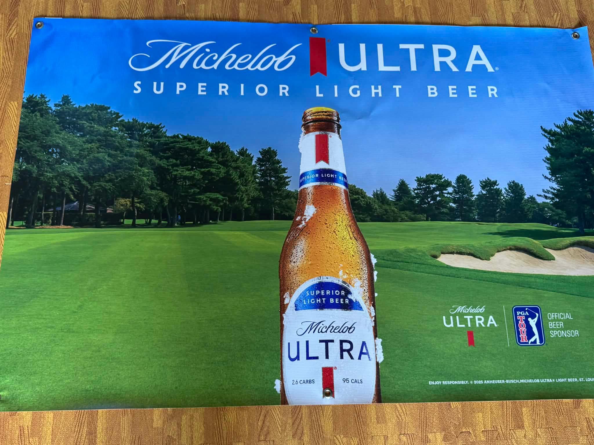 This oversized banner is a premium display piece for home bars, golf simulators, mancaves, garages, clubhouses, sports bars, and beer memorabilia collections. The golf-course imagery makes it especially popular with golfers, country club decor buyers, and Michelob Ultra collectors.