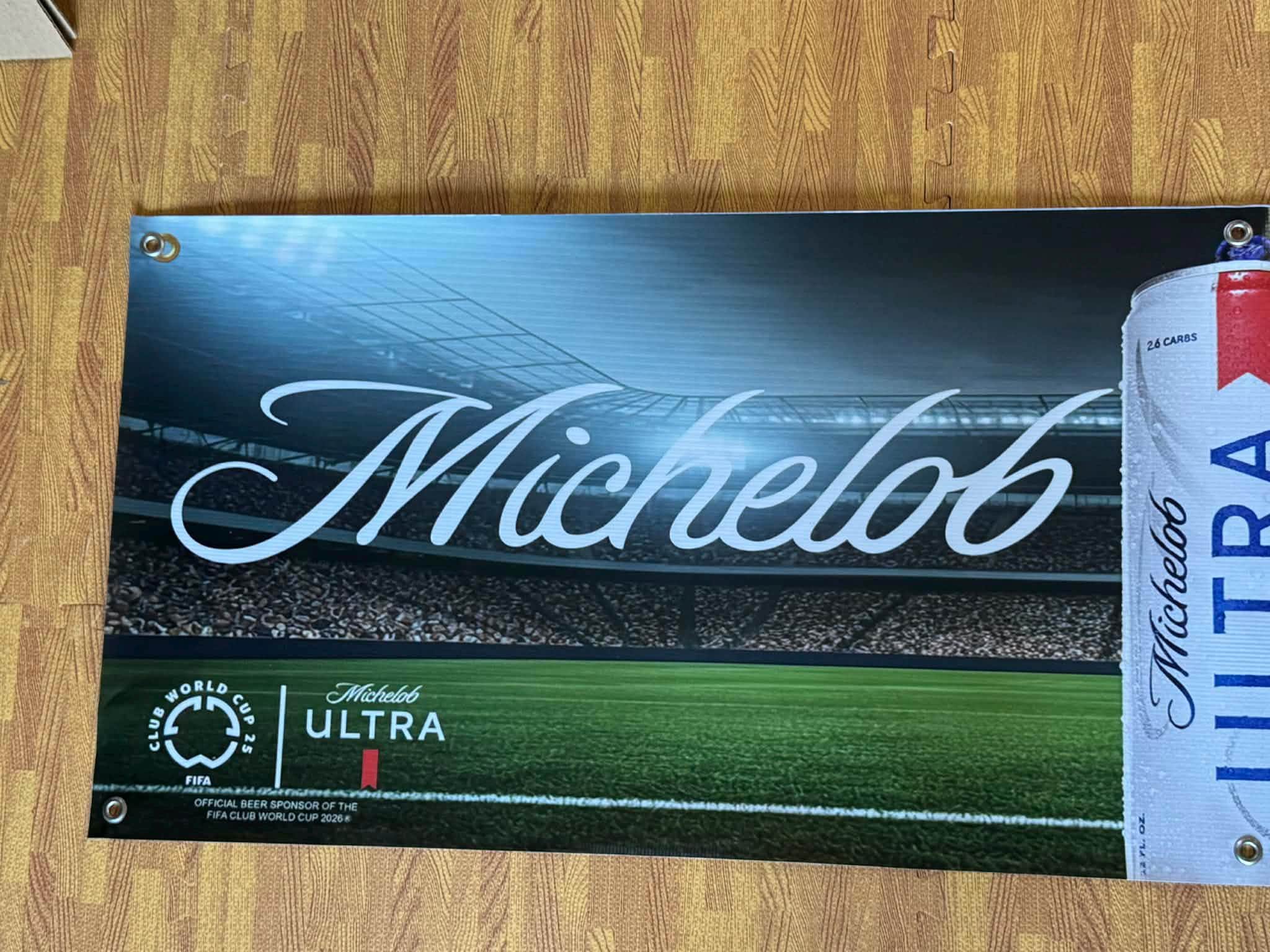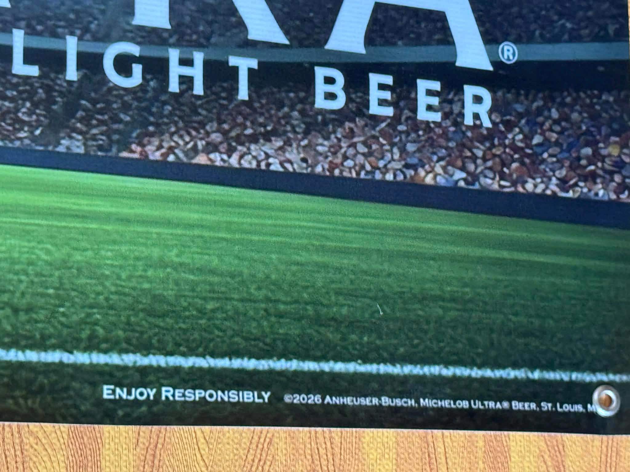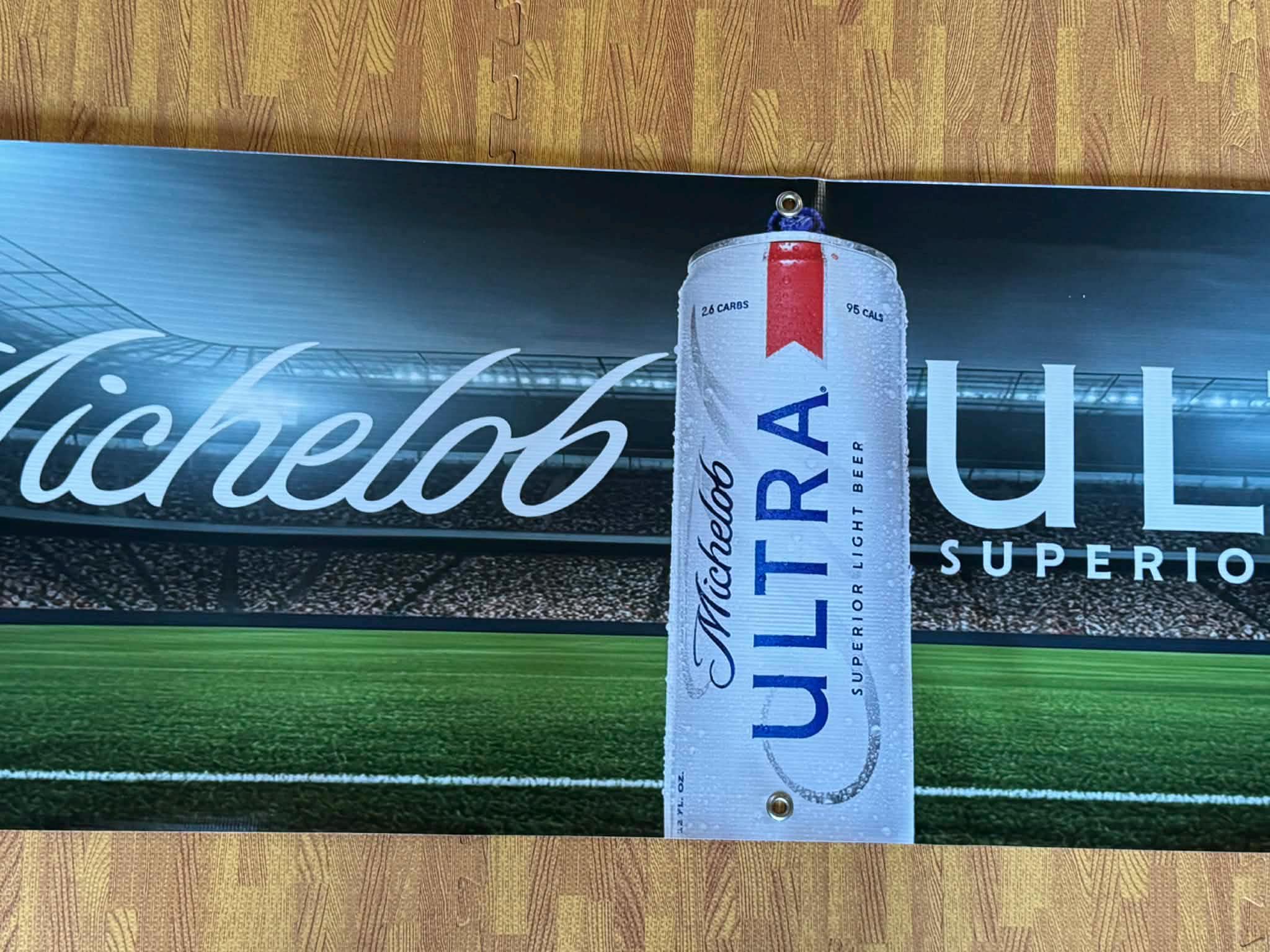 Oversized Michelob Ultra promotional vinyl banner featuring bold stadium artwork and full-width branding. This long-format banner is designed for high visibility and makes an excellent statement piece for bars, mancaves, garages, gyms, golf simulators, and event displays.