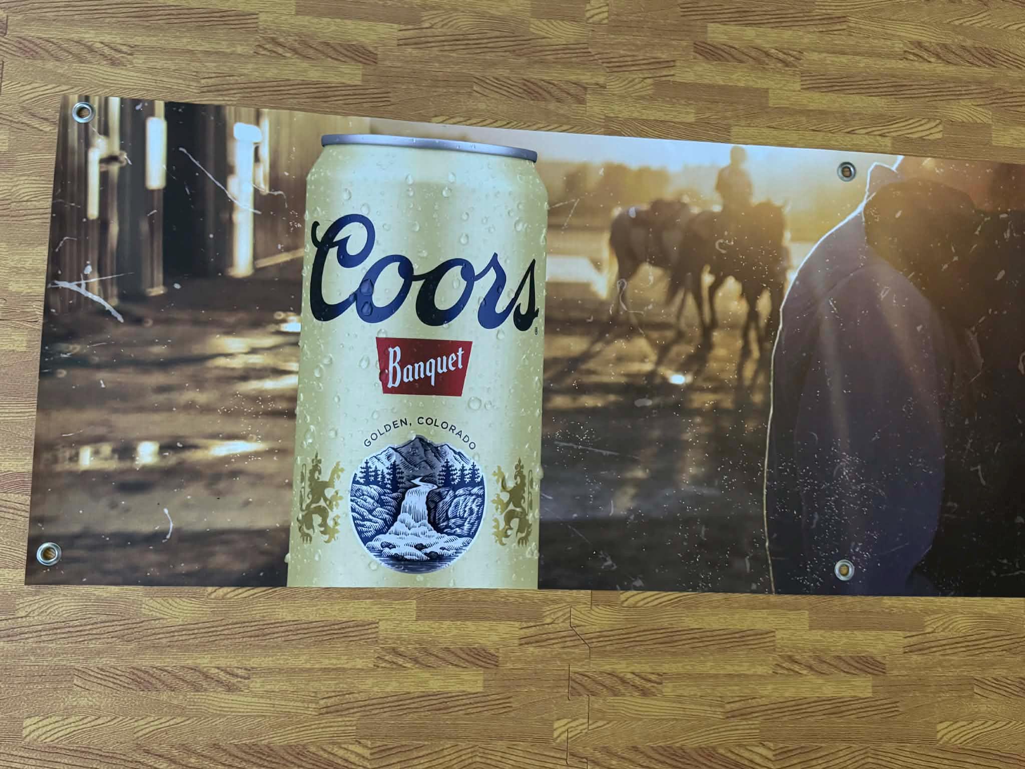 Add bold, vintage-inspired beer decor to your space with this NEW Coors Banquet “Start Your Legacy” wall banner. Designed with classic Coors Banquet imagery and mountain graphics, this extra-long banner is perfect for filling wide wall spaces in a mancave, garage bar, home bar, lodge, or workshop.