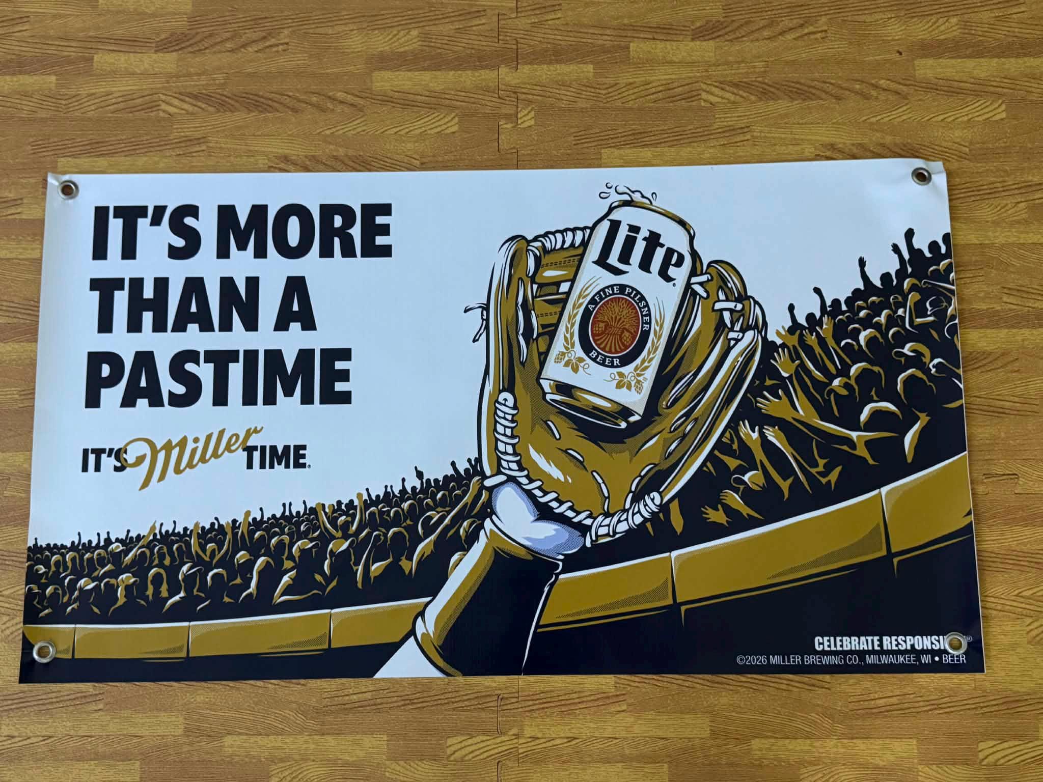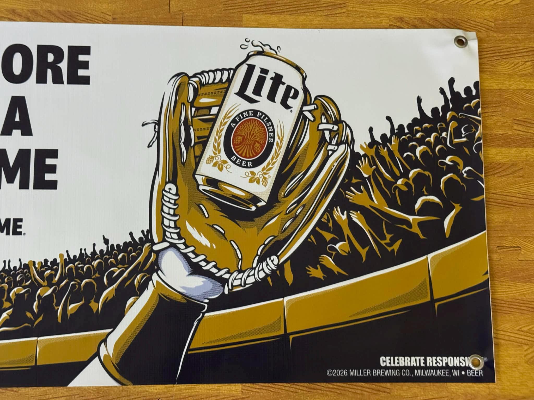 Make a bold statement in your space with this NEW Miller Lite wall banner, featuring a high-energy stadium crowd design and classic Miller Lite branding. The long rectangular format makes it perfect for wide wall areas in a mancave, garage bar, game room, basement, or home bar.