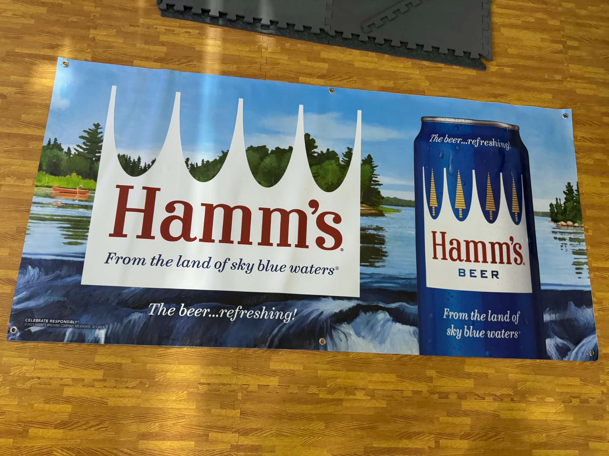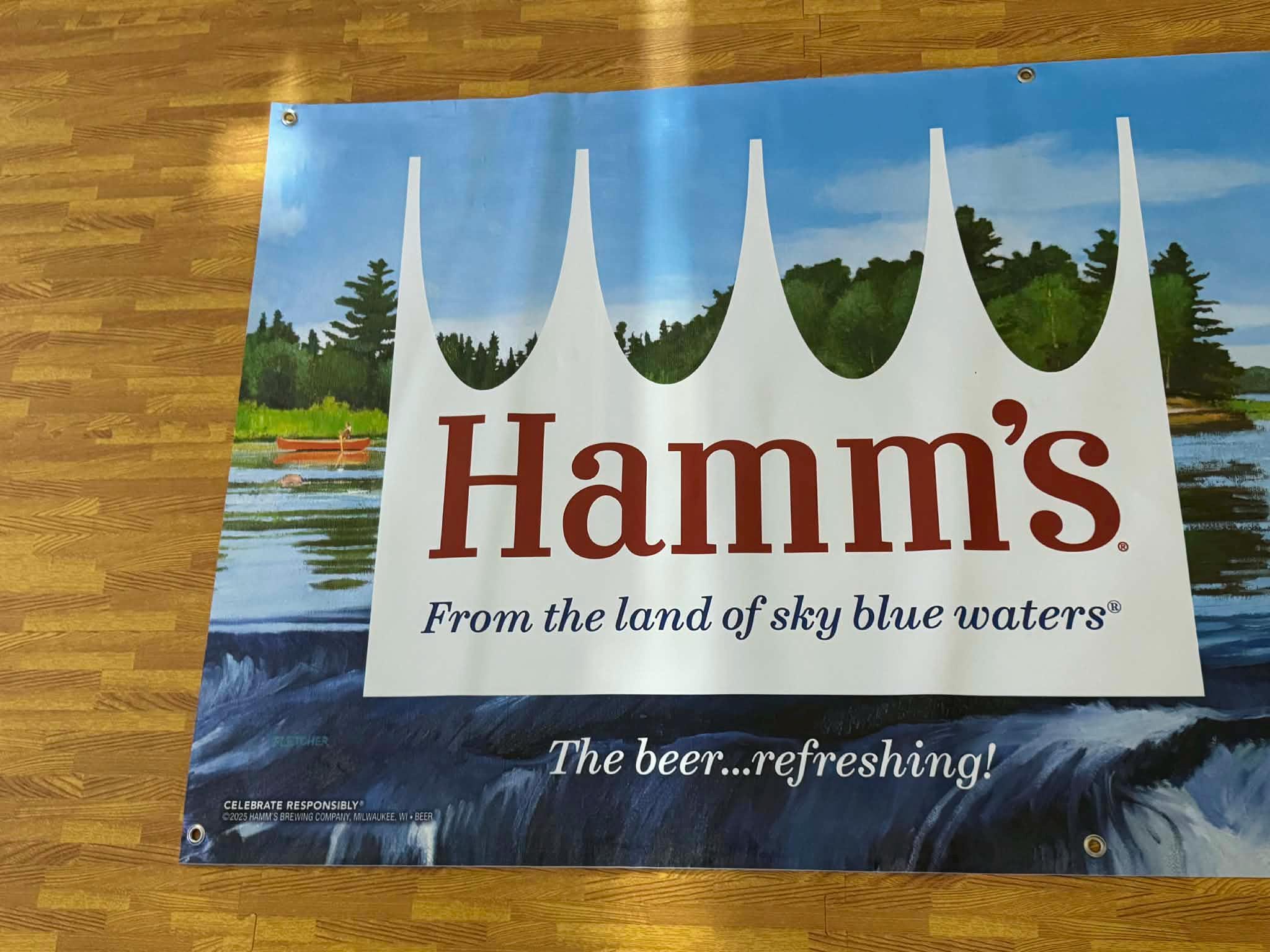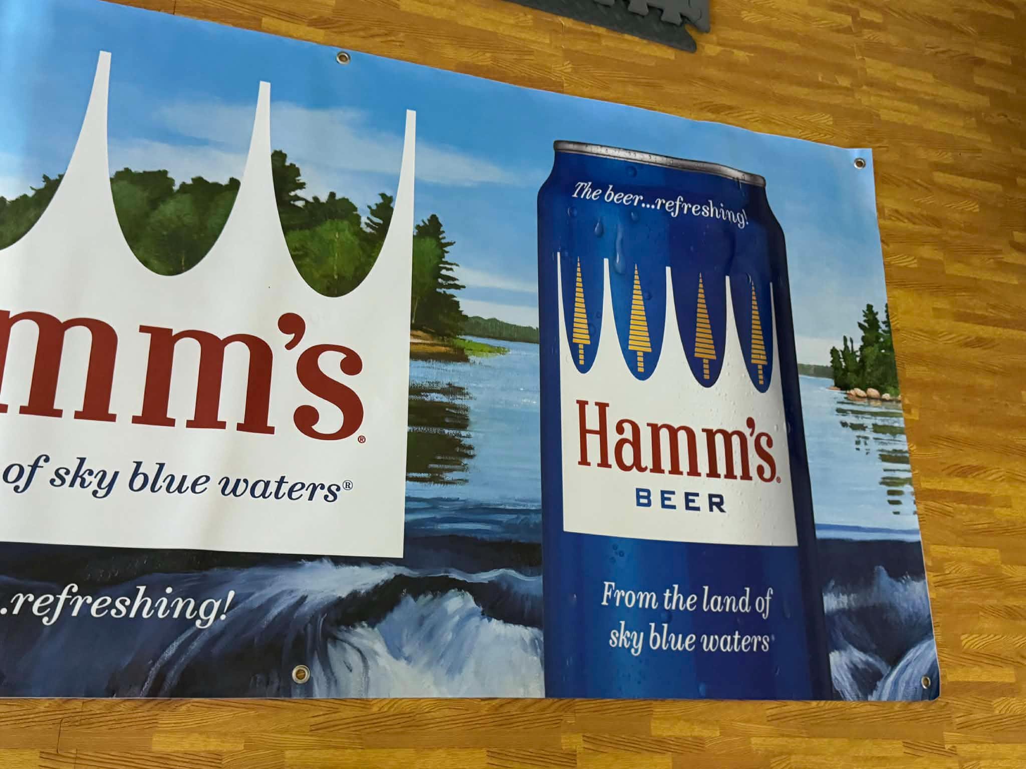 Bring classic beer history and bold vintage style to your space with this oversized Hamm’s Beer wall banner. Featuring iconic Hamm’s branding with scenic outdoor imagery, this large-format banner makes an instant statement in man caves, garages, home bars, basements, and taverns.