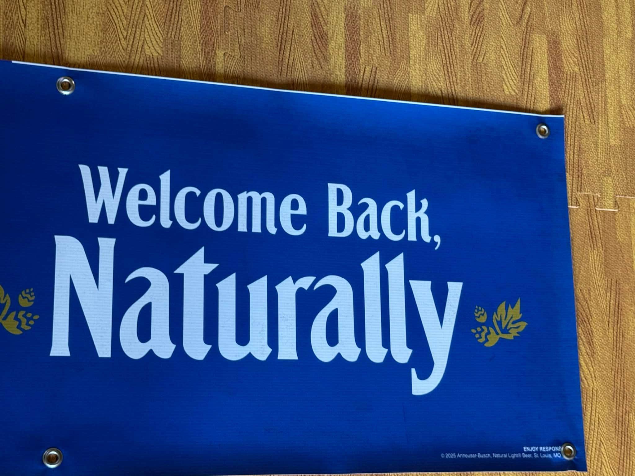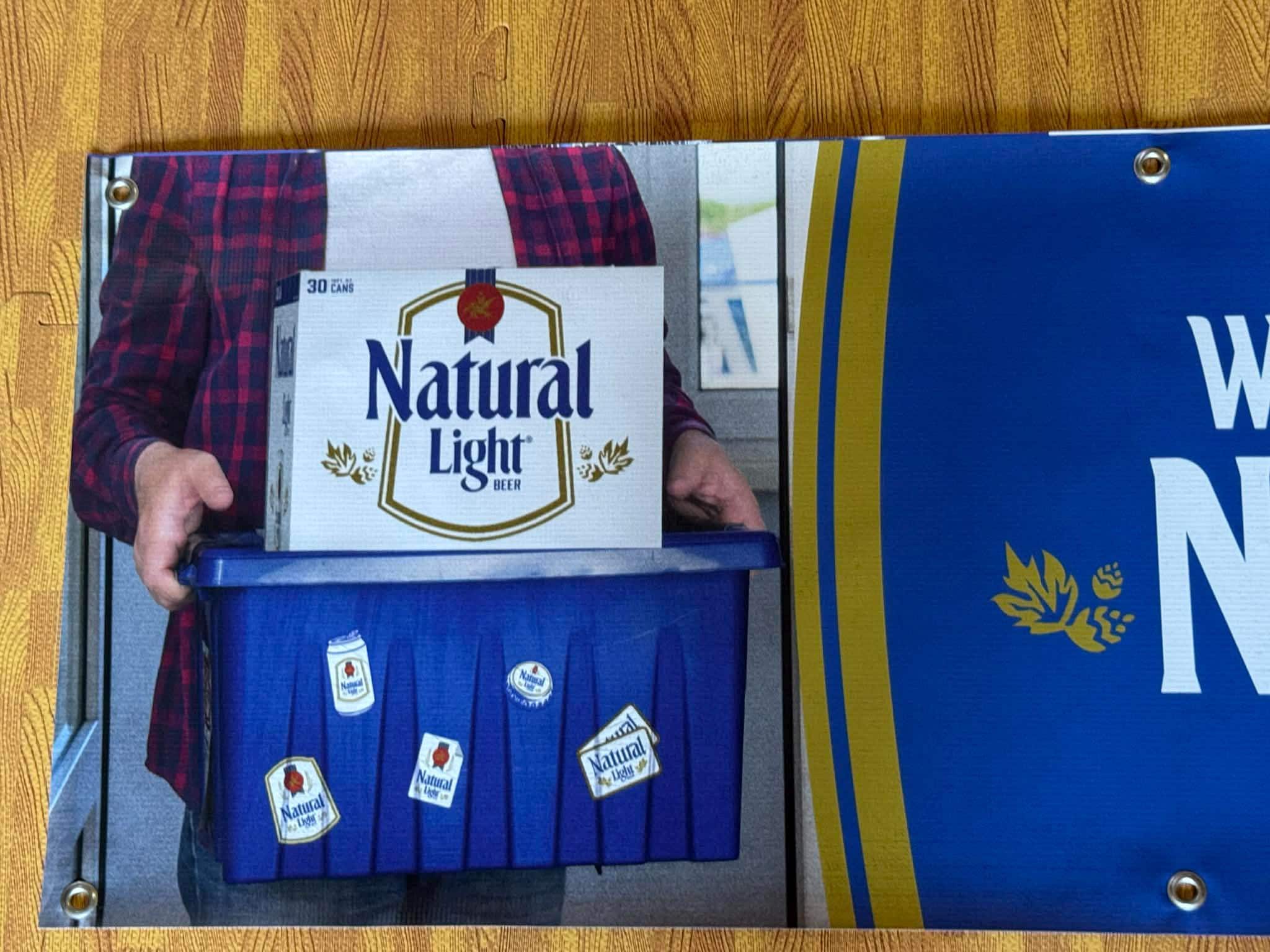 Bring classic beer branding and bold color to your space with this Natural Light “Welcome Back” vinyl banner. Featuring a cooler-and-case graphic paired with the iconic welcome message, this banner is perfect for adding personality to any bar setup, man cave, garage, game room, or covered outdoor area.
