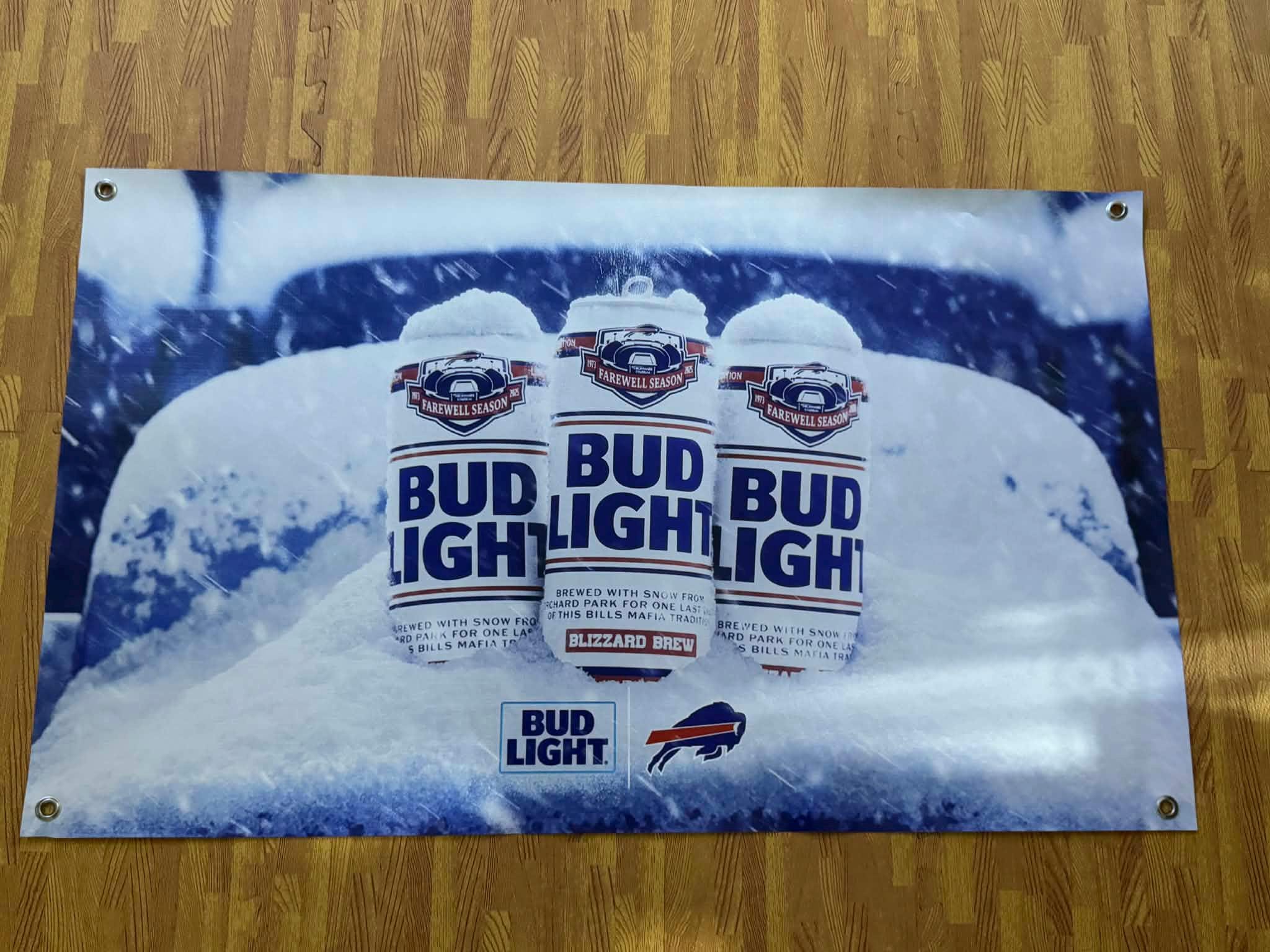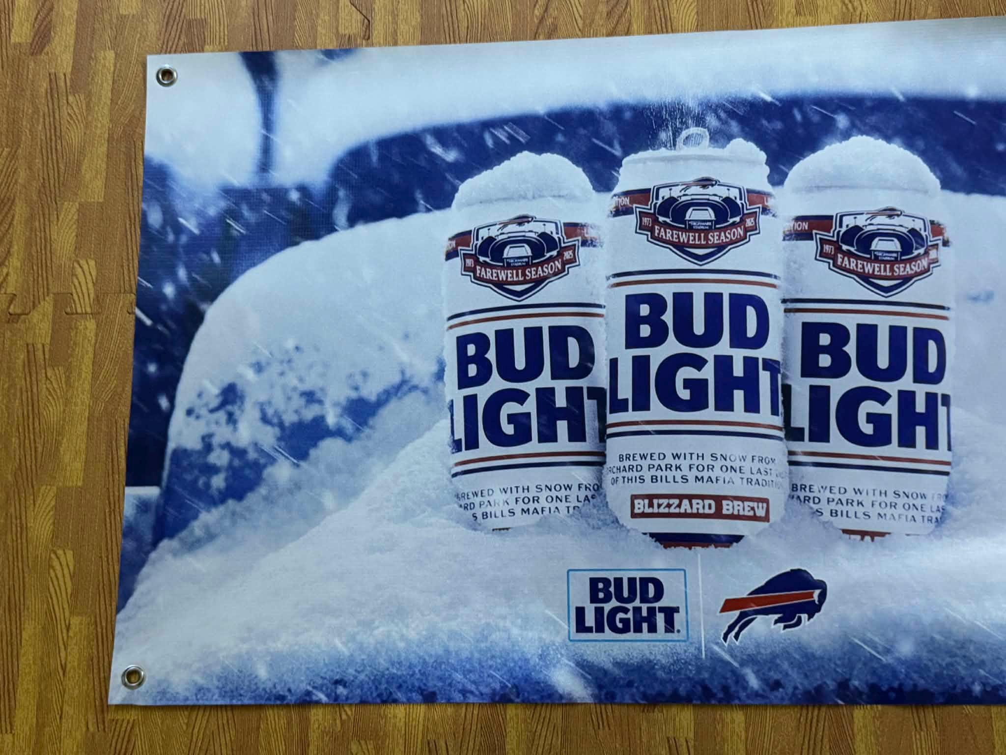 Celebrate a memorable chapter in Buffalo football history with this Bud Light Buffalo Bills Farewell Season banner. Featuring bold winter visuals and Bills branding, this piece captures the end-of-season energy that true fans and collectors appreciate.