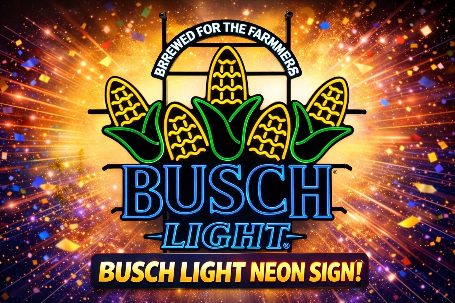 Celebrate America’s farming roots with this large Busch Light “Brewed for the Farmers” Corn LED sign, featuring bright corn cob graphics and the iconic Busch Light logo.