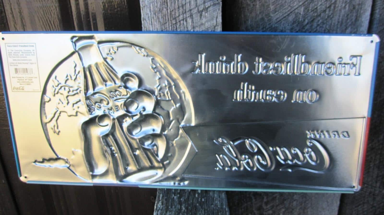 Add a bold, nostalgic statement to your space with this Coca-Cola “Friendliest Drink on Earth” 3-D embossed tin sign. Featuring the iconic globe, classic Coke bottle, and raised dimensional lettering, this piece captures the golden-era look of Coca-Cola advertising with stunning color and depth.