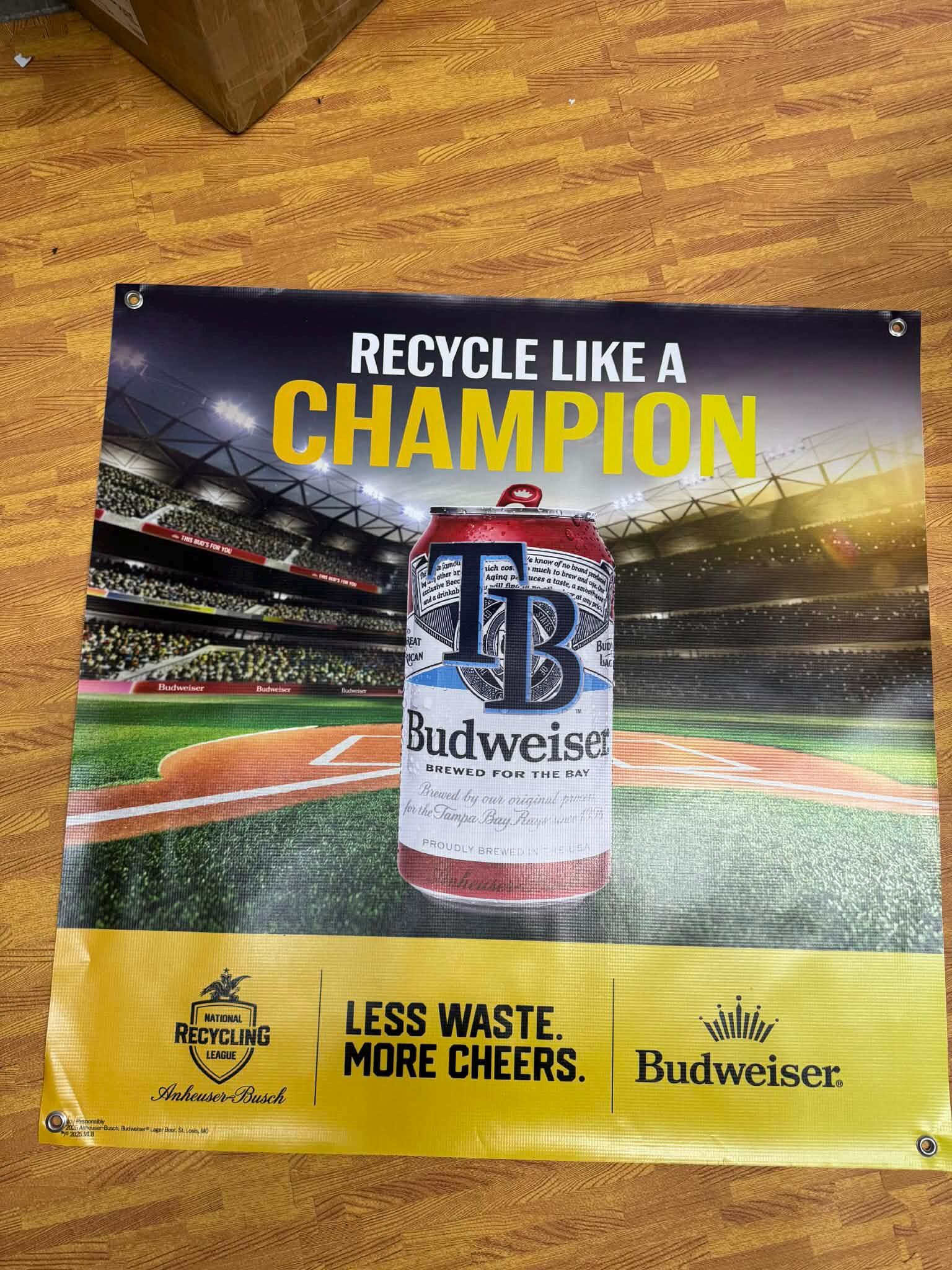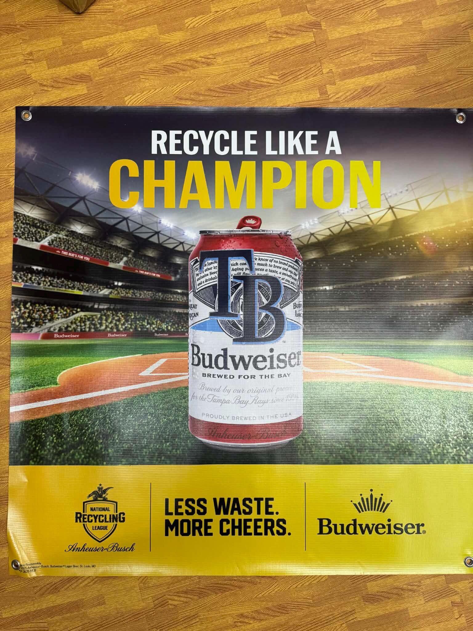 Bring stadium-energy straight into your bar or man cave with this Budweiser “Recycle Like a Champion” banner.