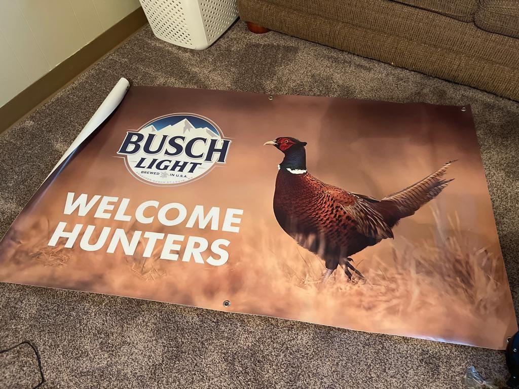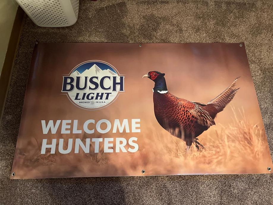 Bring the perfect hunting camp vibe to your cabin, garage, or man cave with this official Busch Light “Welcome Hunters” banner. Featuring a pheasant in tall grass with the classic Busch Light logo, this banner is a must-have for hunters, outdoorsmen, and beer lovers alike.