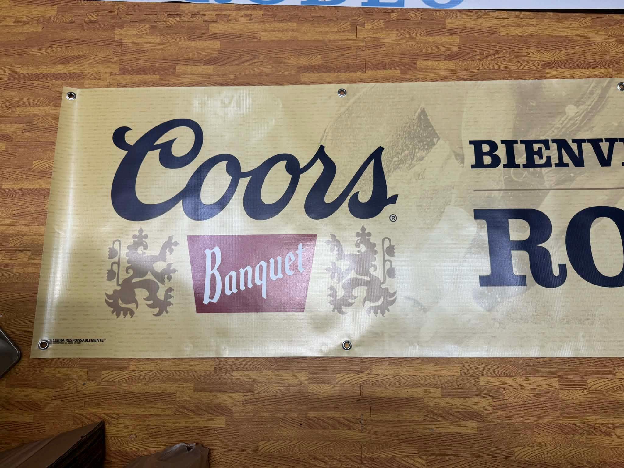 This banner is a large-format promotional display originally designed for beer and event décor, perfect for collectors and fans of classic Coors Banquet visuals.