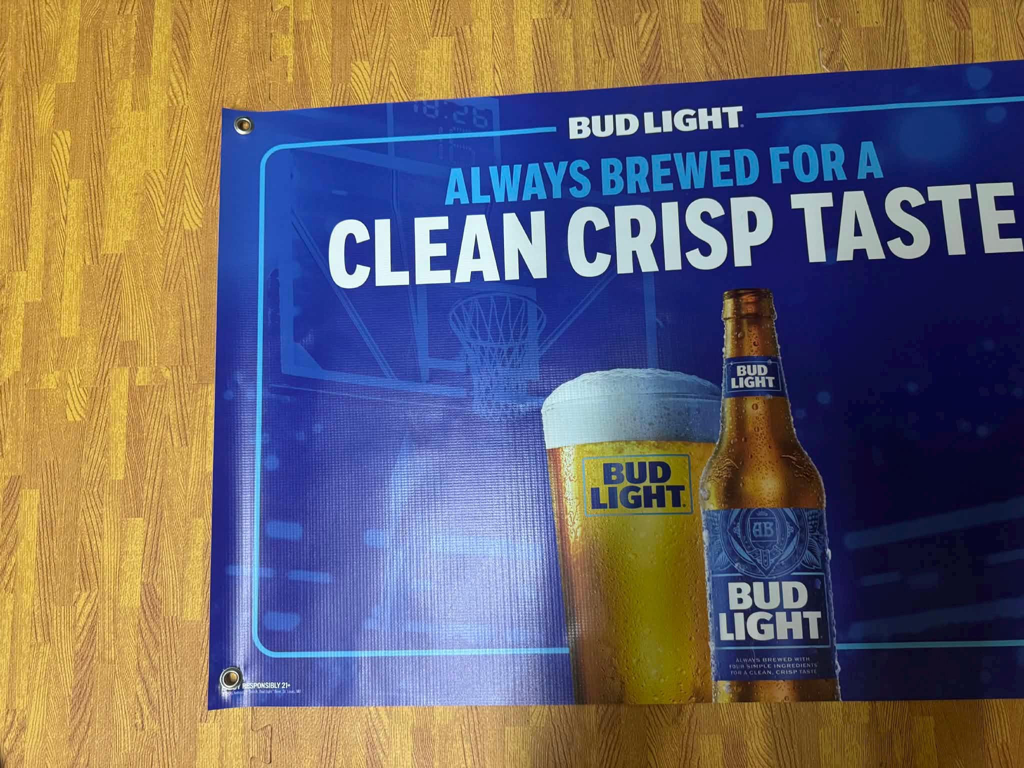 Upgrade your bar, garage, or mancavedecor setup with this official-style Bud Light “Always Brewed For A Clean Crisp Taste” Beer Banner. Featuring bold blue branding, bottle and pint graphics, and a clean modern layout, this 36” x 24” banner is a perfect centerpiece for any beer-themed wall.
