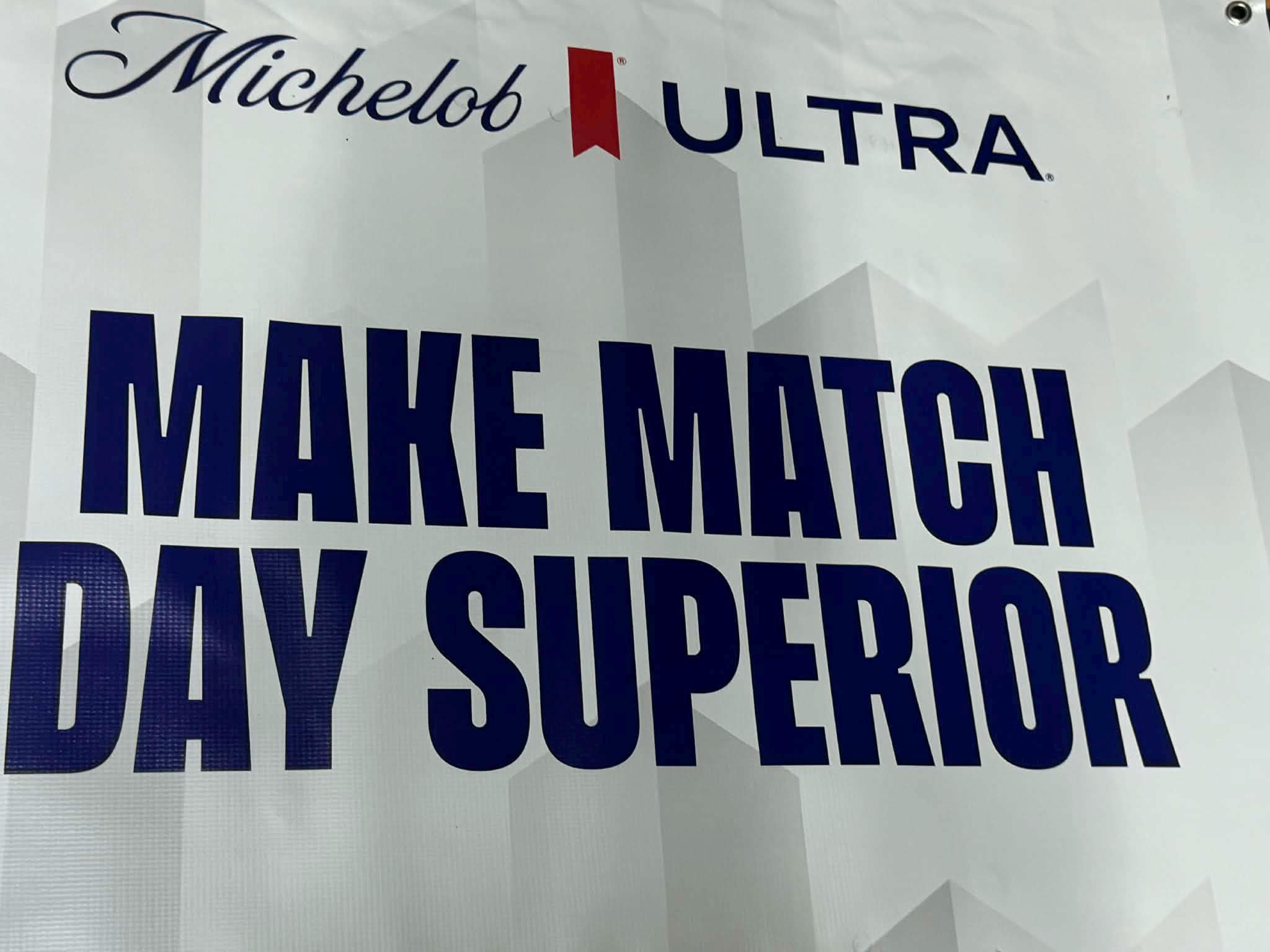 The clean white layout, bold Michelob Ultra branding, and iconic trophy graphic make this banner perfect for soccer fans, home bars, garages, game rooms, and sports-themed spaces.
