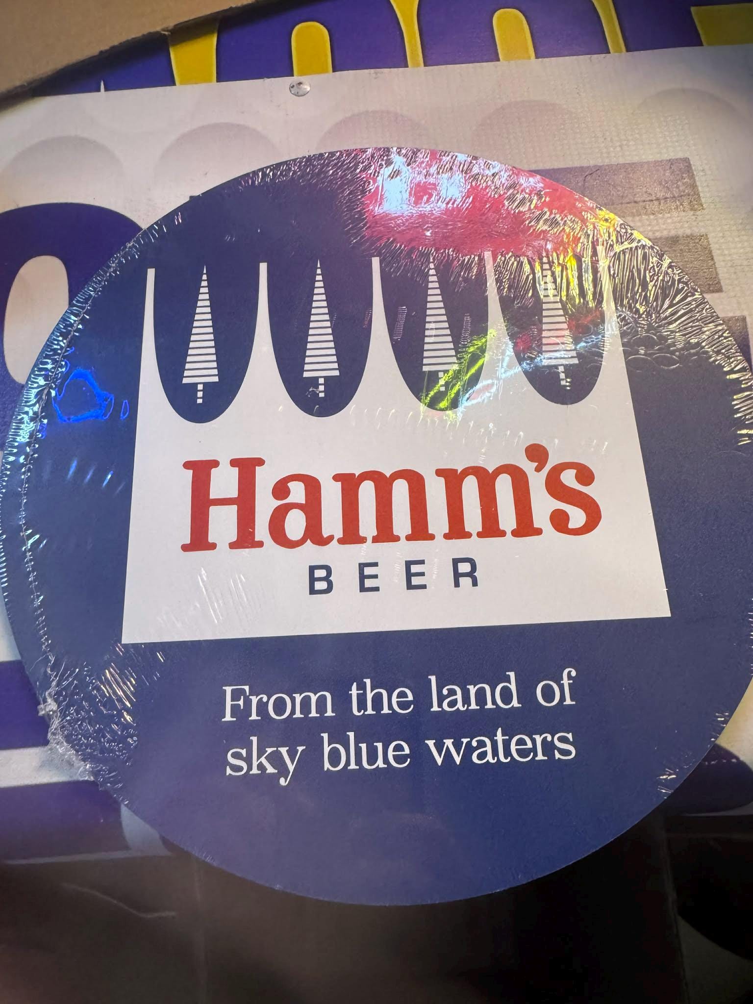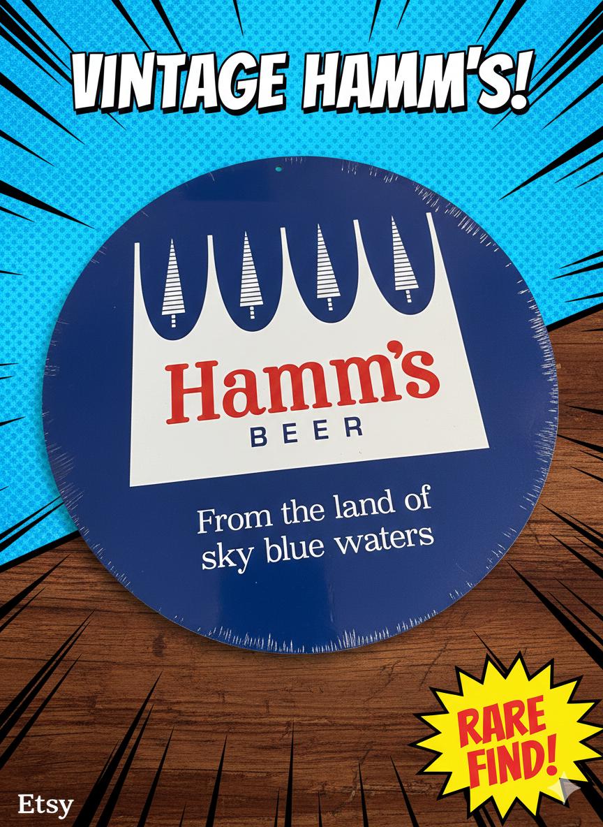 Add classic brewery nostalgia to your bar, garage, or mancavedecor with this Hamm’s Beer Round Metal Sign featuring the iconic “From the Land of Sky Blue Waters” design. This eye-catching aluminum sign is perfect for vintage beer collectors, home bars, garages, and beer-themed decor setups.