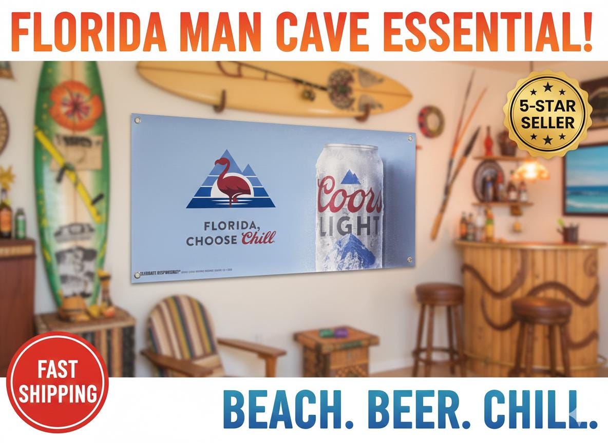 Coors Light “Florida, Choose Chill” banner – perfect for bar decor, beach houses, garages, and mancavedecor setups.