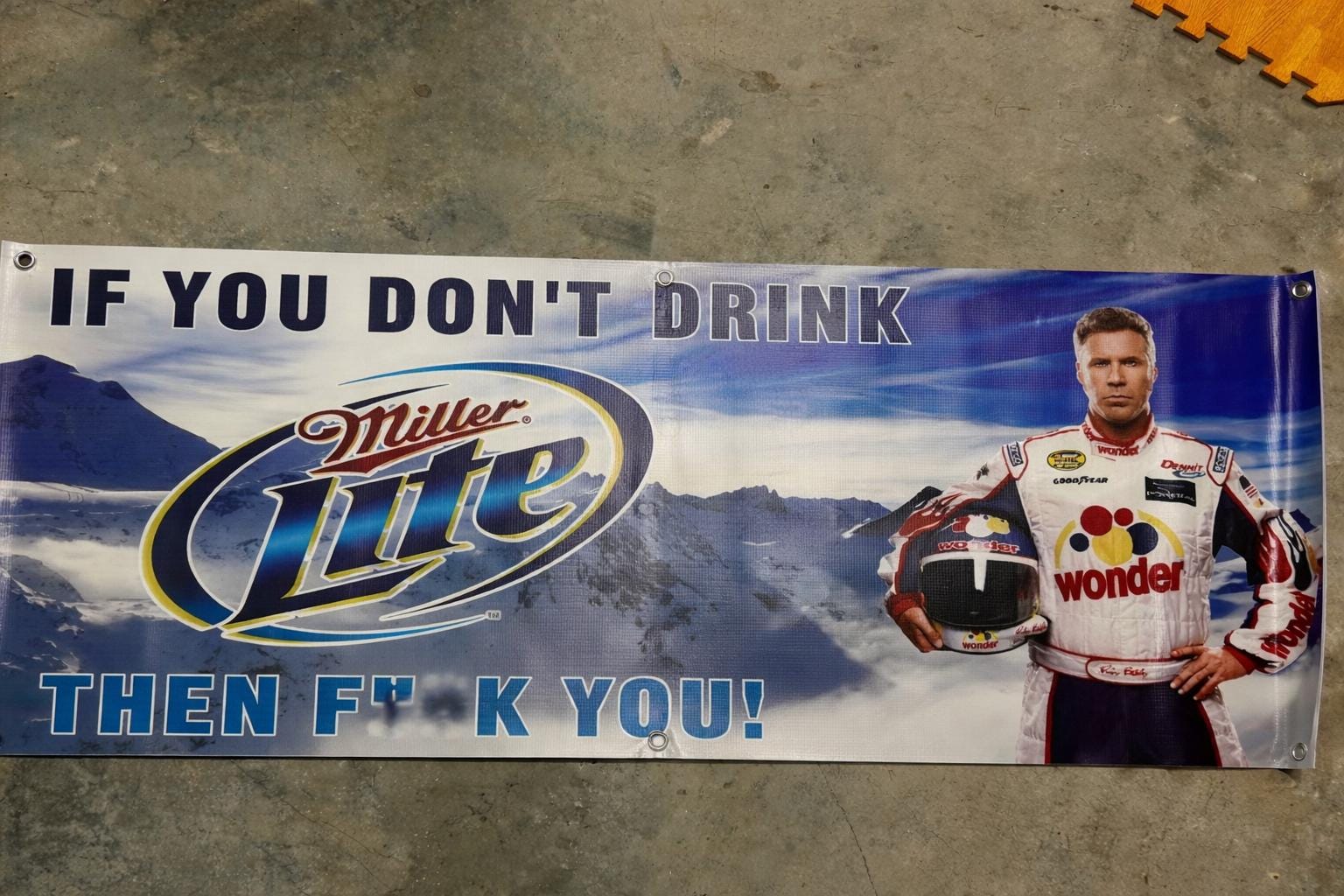 arge Miller Lite Ricky Bobby themed racing banner featuring the famous Talladega Nights quote: