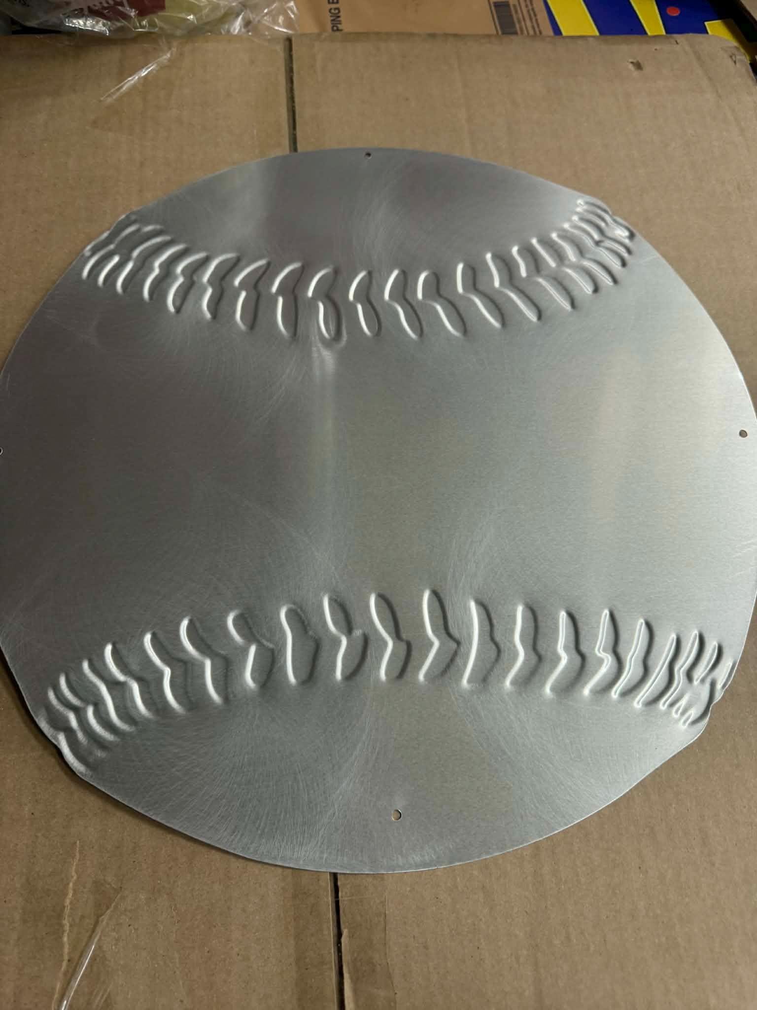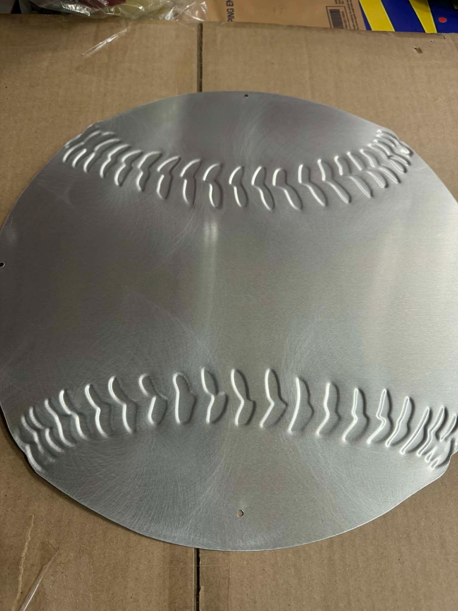 This unique 17.5 inch round baseball-shaped tin sign is perfect for baseball fans, sports bars, home bars, garages, and mancavedecor setups.