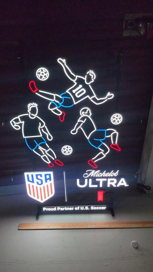 Take your mancavedecor to the next level with this Michelob Ultra soccer motion LED sign — a high-end, eye-catching piece featuring animated soccer players and bright LED lighting.