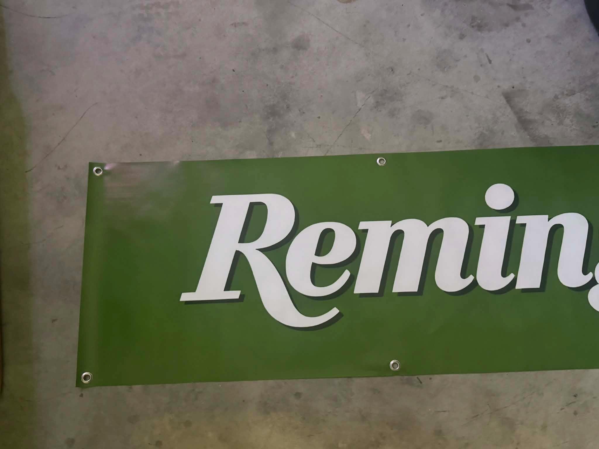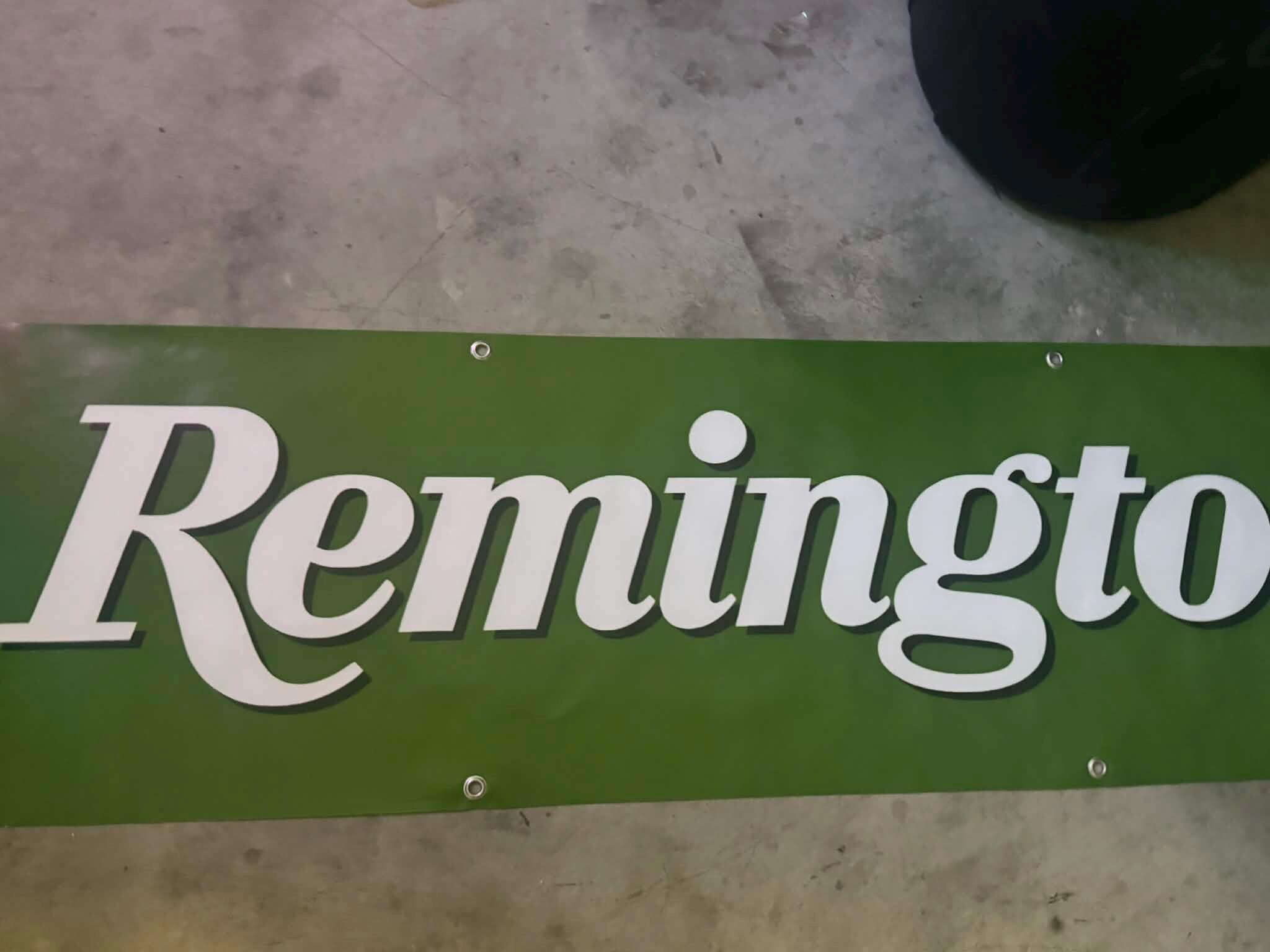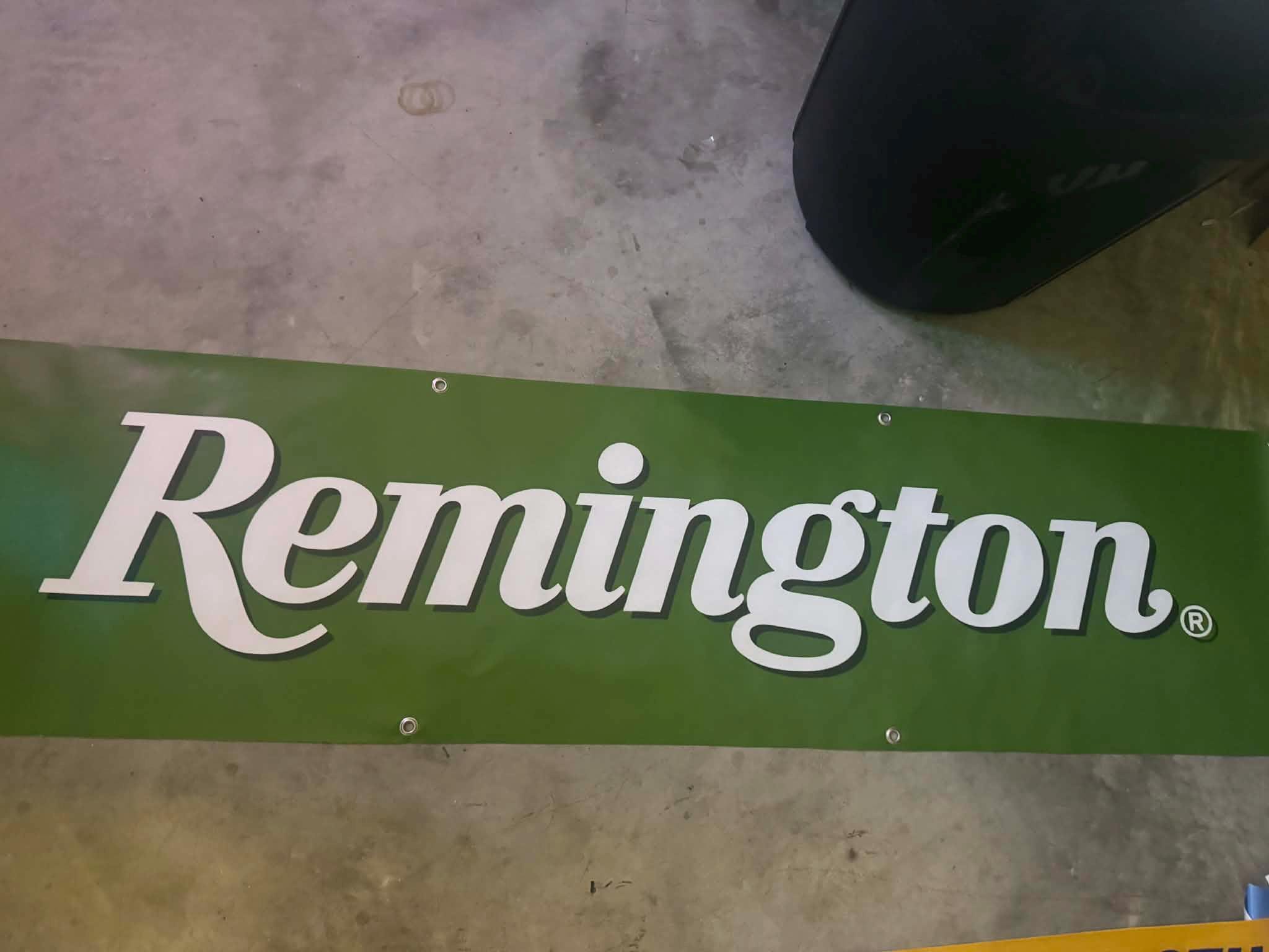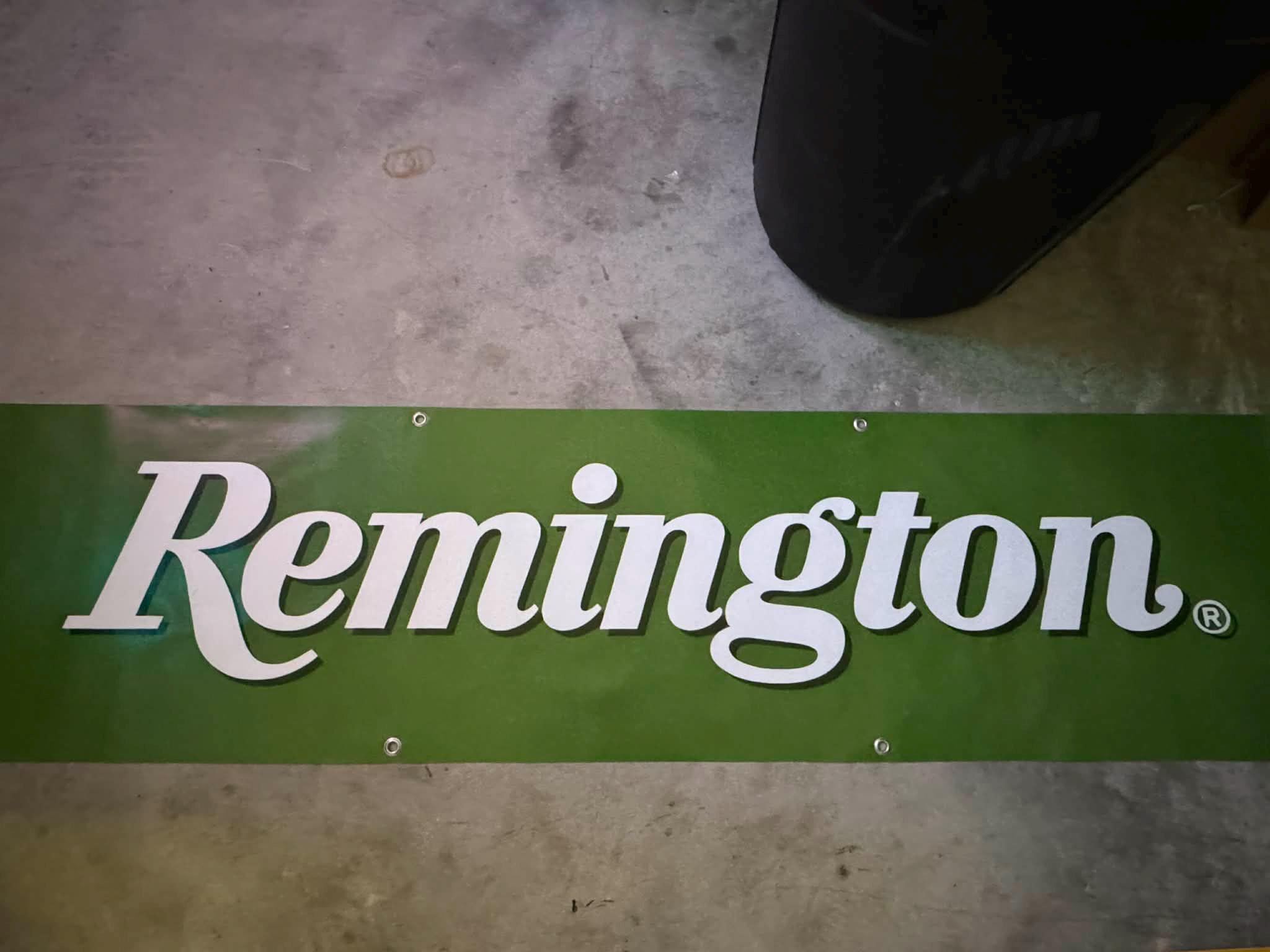Show off your outdoor lifestyle with this Remington Banner, featuring the iconic white Remington logo on a clean green background.