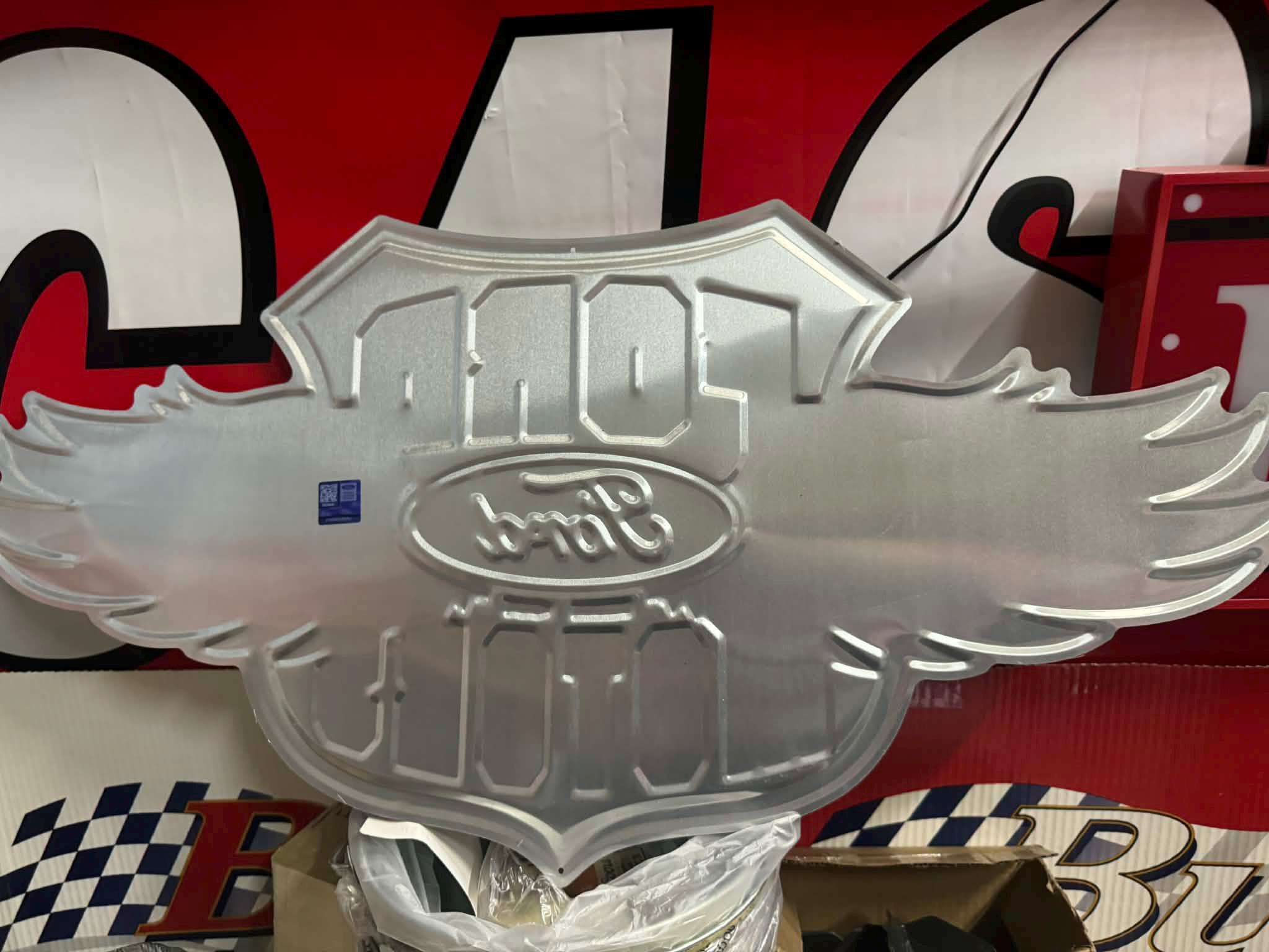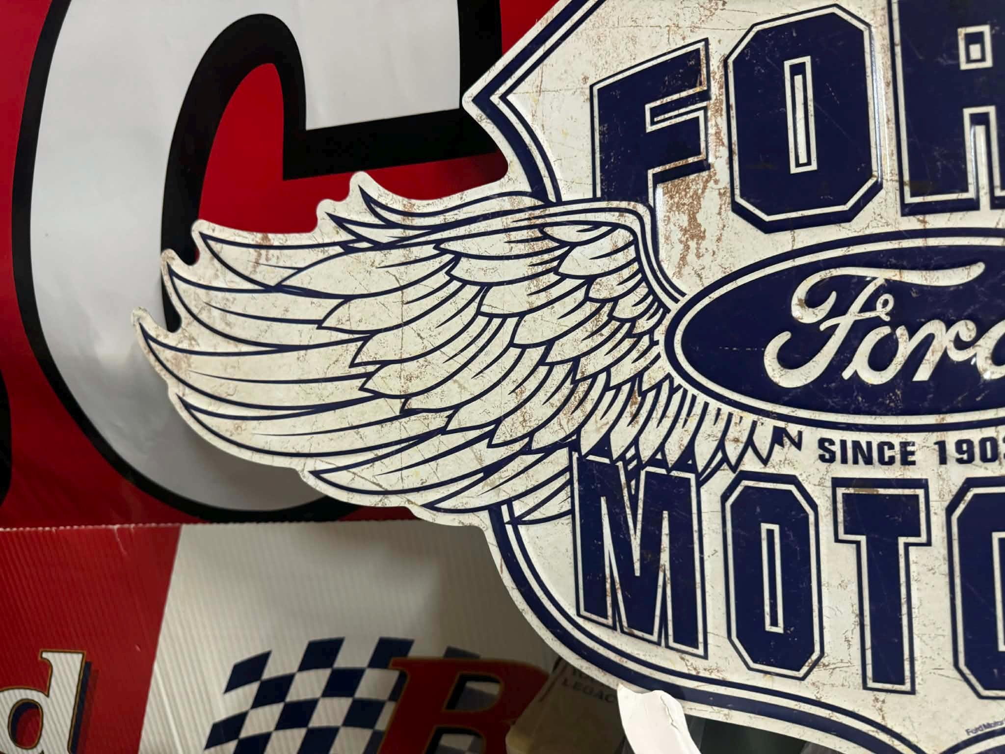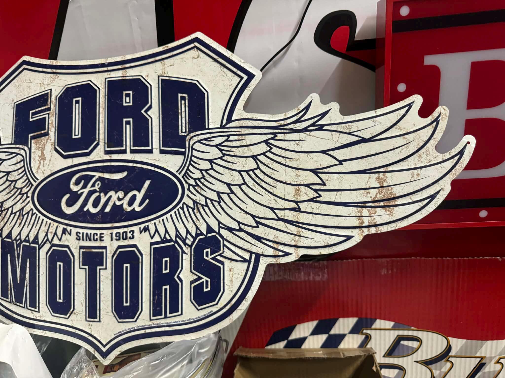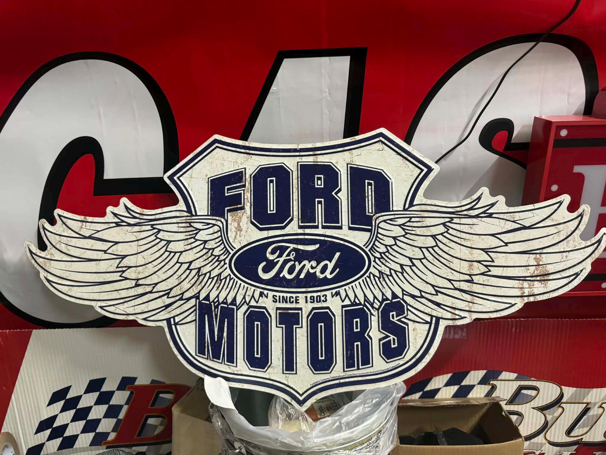 Make a bold statement with this large Ford Motors winged logo tin sign — a true centerpiece for any garage, shop, or mancavedecor setup.