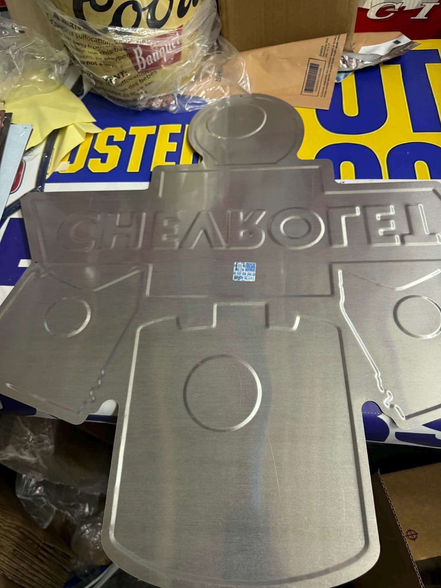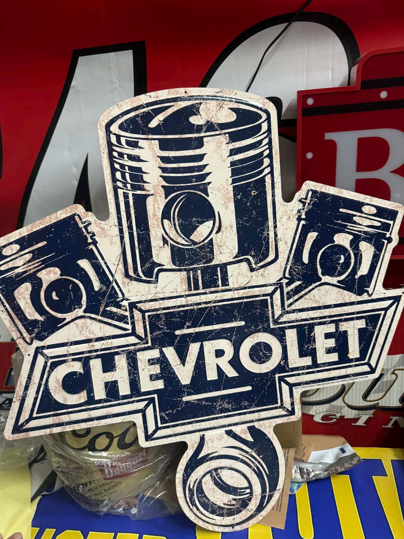 Upgrade your garage with this bold Chevrolet piston logo tin sign — a unique, die-cut design built for true car enthusiasts.